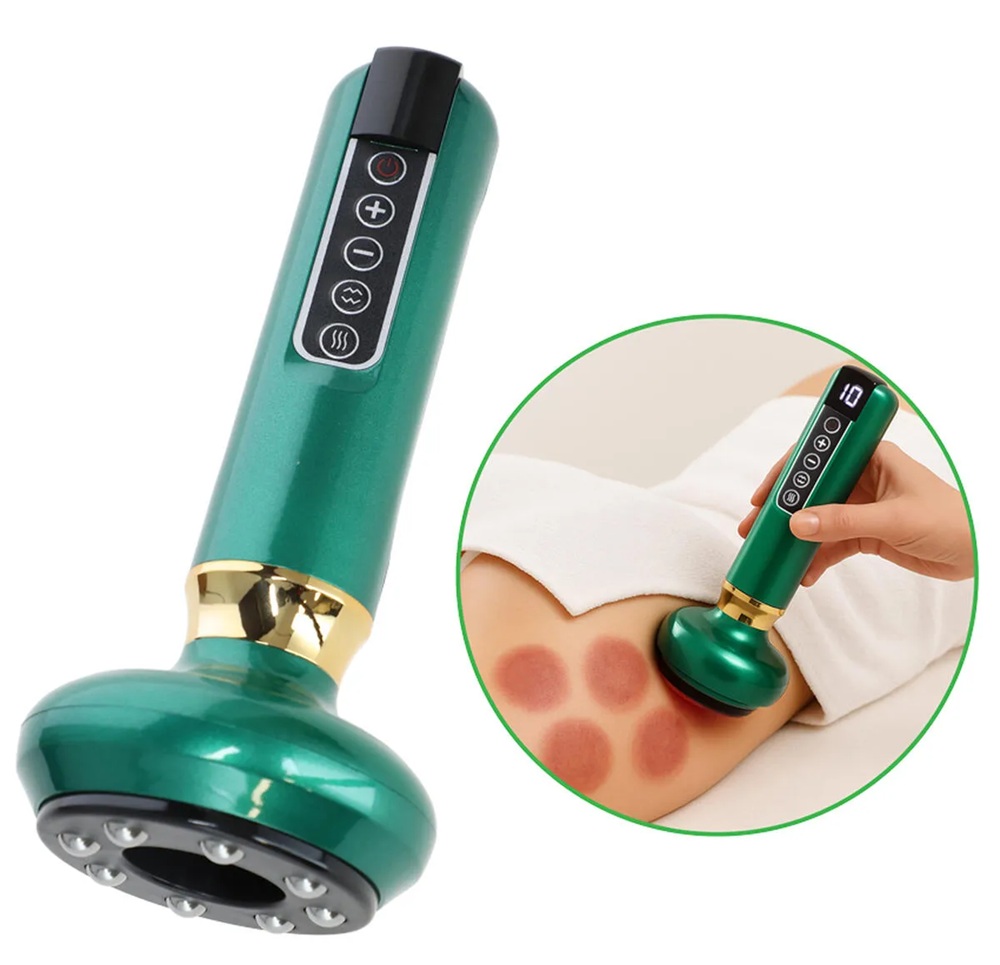 Elektrický baňkovací přístroj na celulitidu spojuje účinky vakuové masáže, tepelné terapie infračerveným světlem a tradičního scrapingu techniky gua sha.