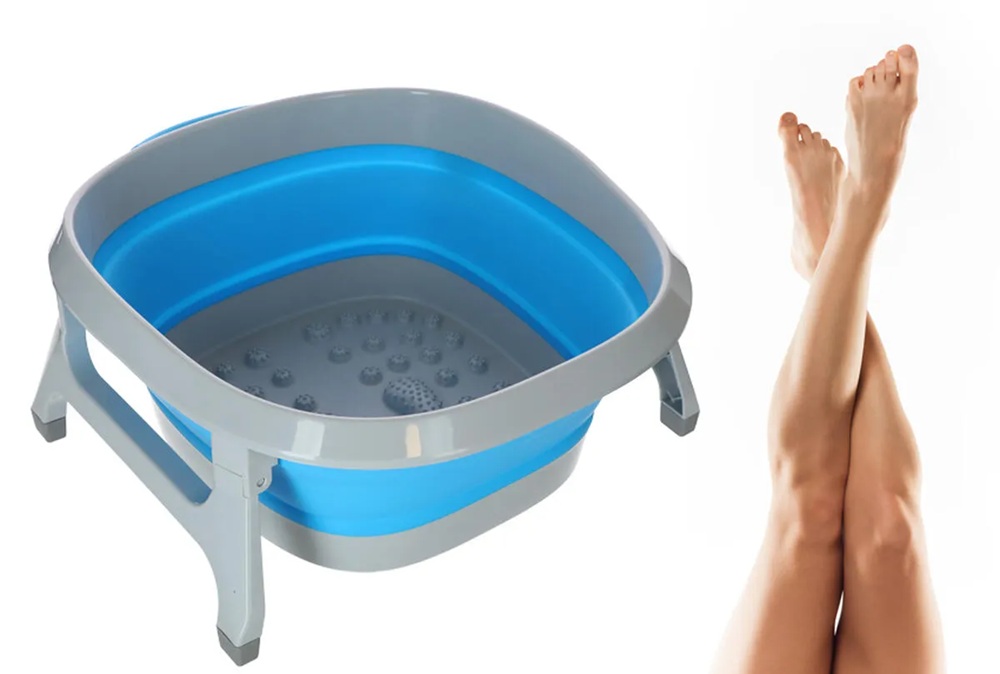 Přenosná skládací vanička s masážními body poskytuje prostor k relaxační koupeli nohou v pohodlí domova.
