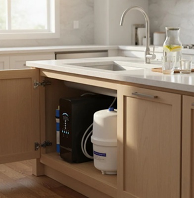 Domácí systémy reverzní osmózy se obvykle instalují přímo pod kuchyňský dřez a napojují se na přívod studené vody. Nezabírají tak místo na kuchyňské lince – na dřez se pouze přidá samostatná baterie (kohoutek) pro čepování filtrované vody. Součástí filtru bývá také zásobní nádrž, která uchovává přefiltrovanou vodu, takže je kdykoliv k dispozici dostatek čisté vody bez čekání. Moderní filtrační jednotky mívají i praktické doplňky, například vestavěný digitální displej zobrazující stav zařízení a filtrů, a samy upozorní na potřebu výměny filtru nebo jiný servisní úkon.