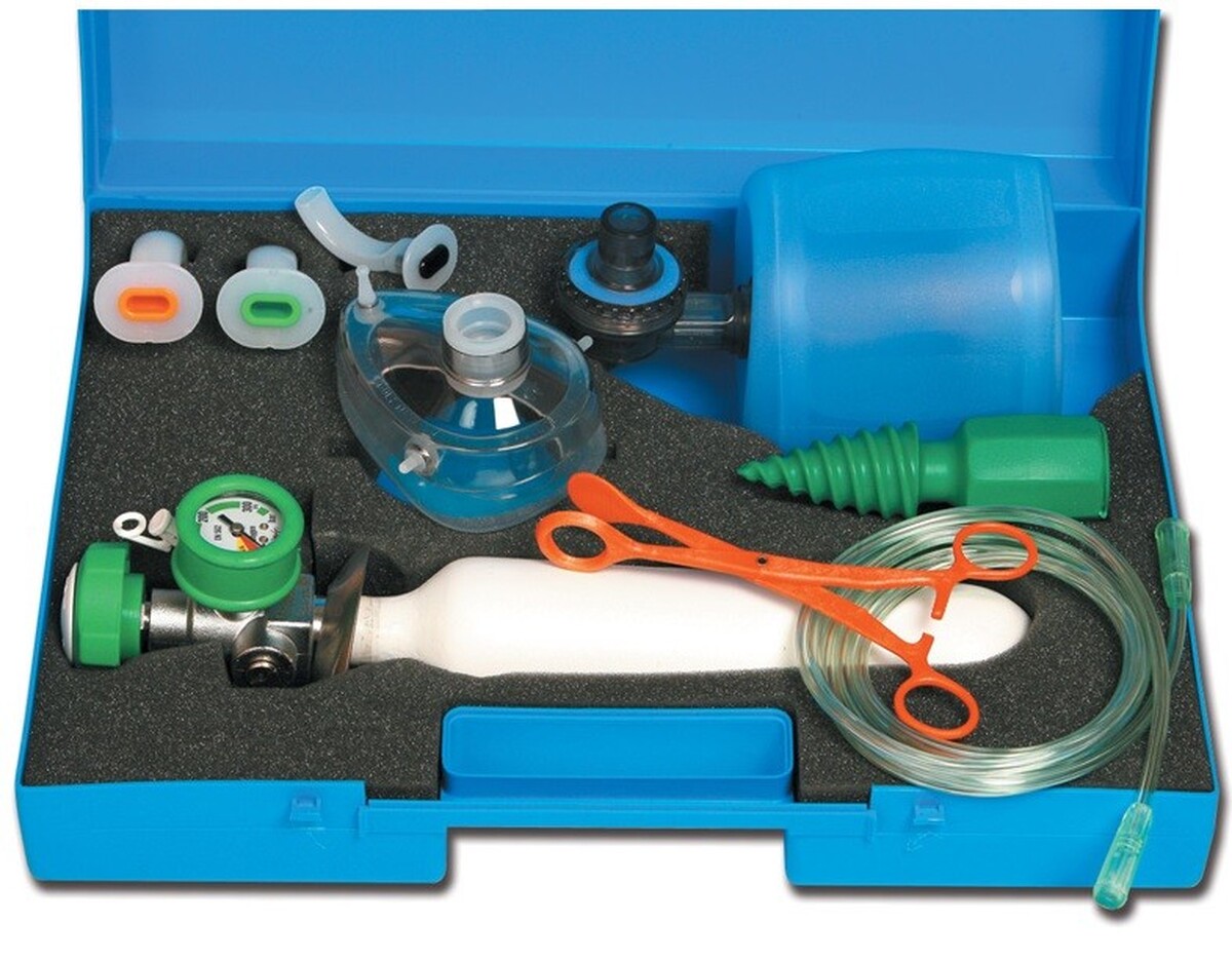 Sada na resuscitaci obsahuje kyslíkovou láhev bez náplně.