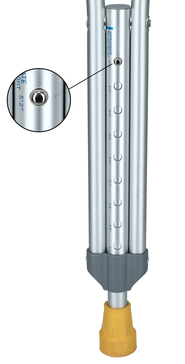 Podpaží berly lze výškově nastavit v rozmezí od 135 cm do 155 cm. Je vhodná pro pacienty s výškou 175 - 195 cm.