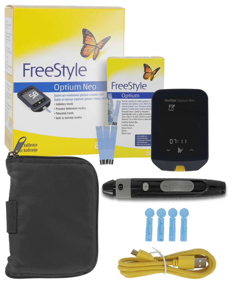 Glukometr FreeStyle Optium Neo minimalizuje možné interference z více než 60 společných léků a látek, má alternativní místa odběru. Glukometr je bez kalibrace a měření se spustí pouze tehdy, když je nanesen dostateční vzorek krve. Jednotlivě balené testovací proužky slouží pro minimalizaci znečištění a vlivu vnějších faktorů.