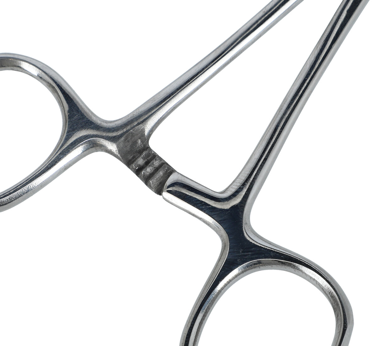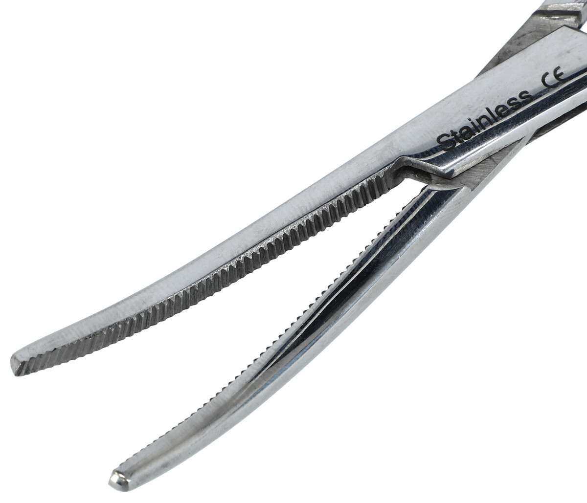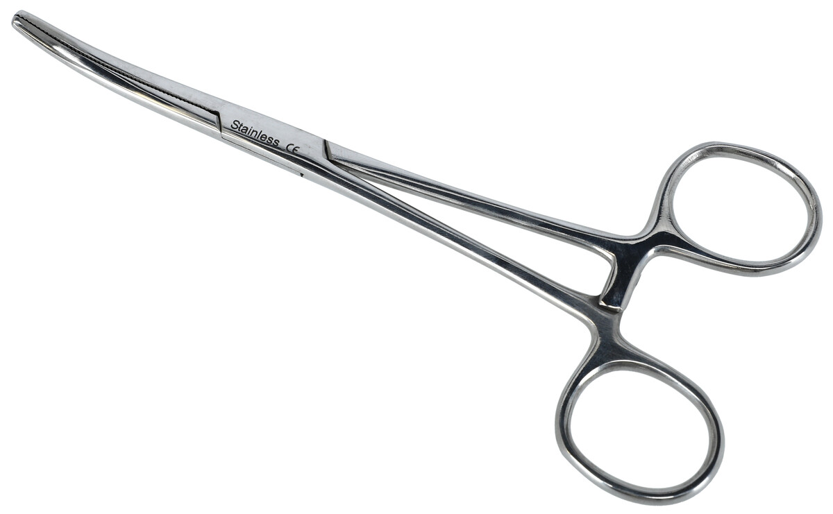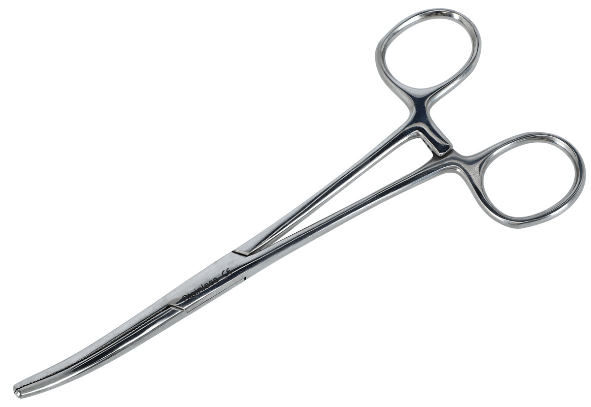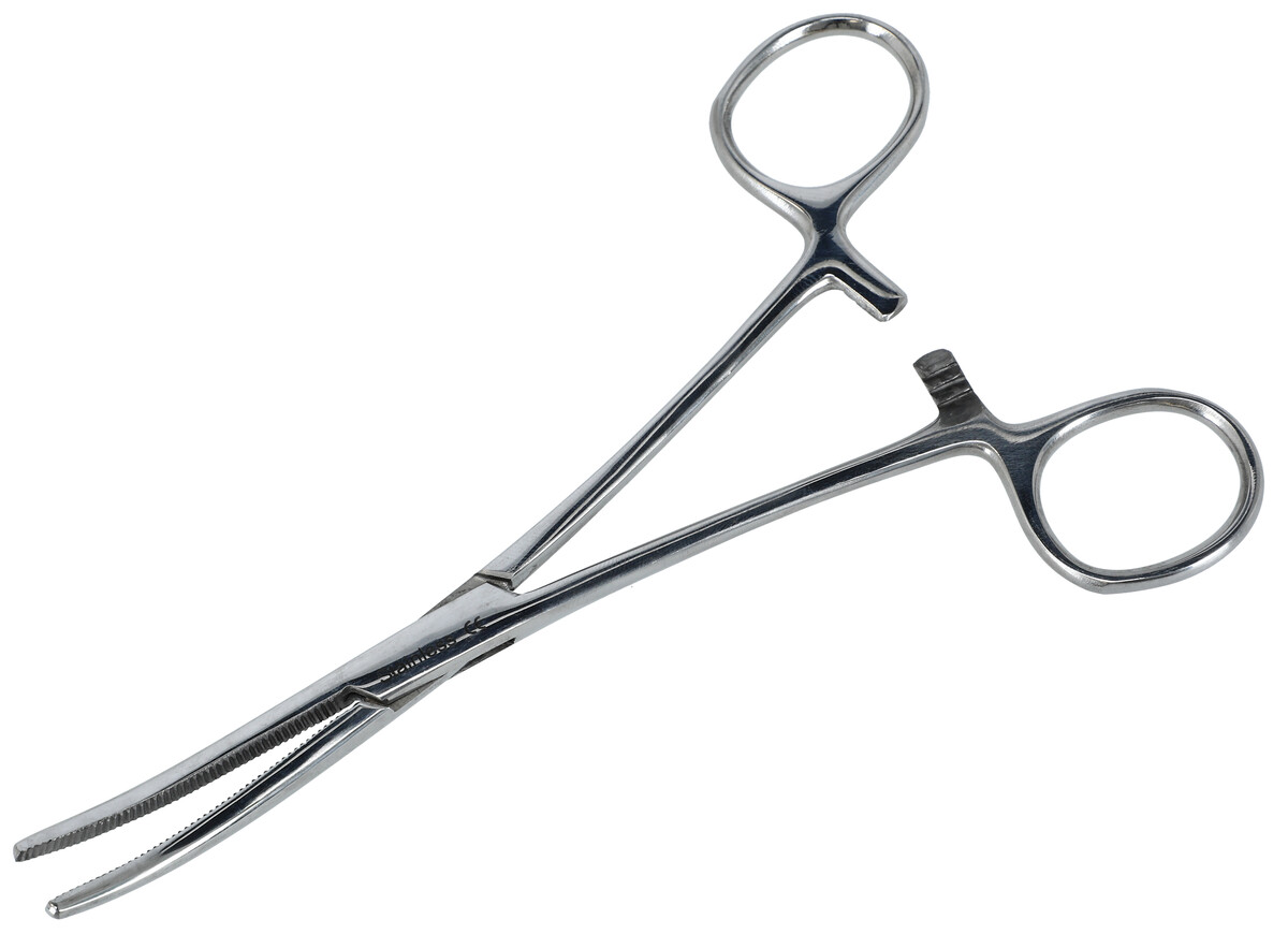 Kovový, chirurgický zahnutý pean na odstraňování háčků všech druhů.