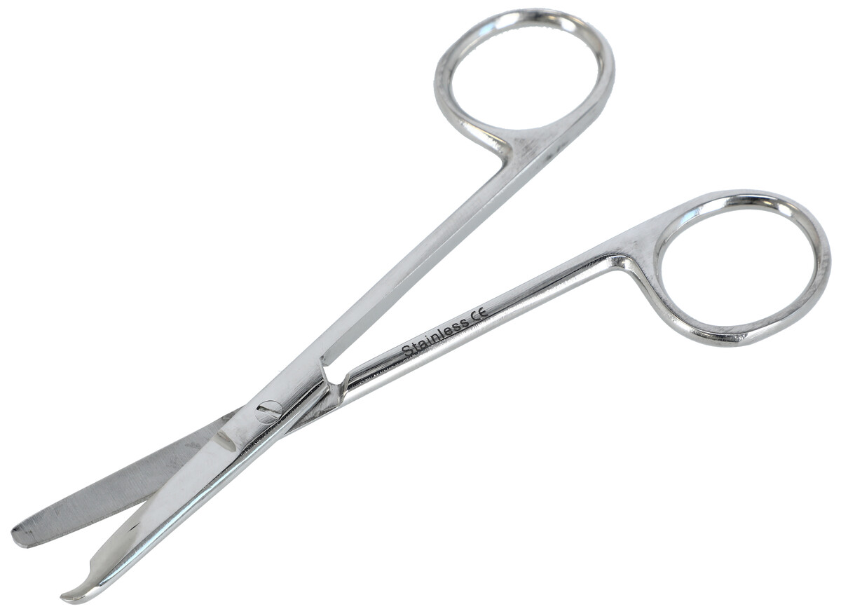 Nůžky se speciálně tvarovanou špičkou jsou určeny ke stříhání stehů a další chirurgické účely.