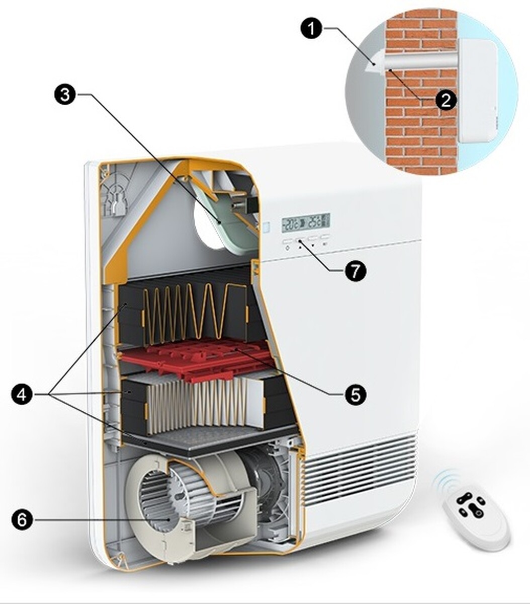 • 6. Ventilátor. Slouží na dodávku (nasávání) venkovního vzduchu do místnosti.