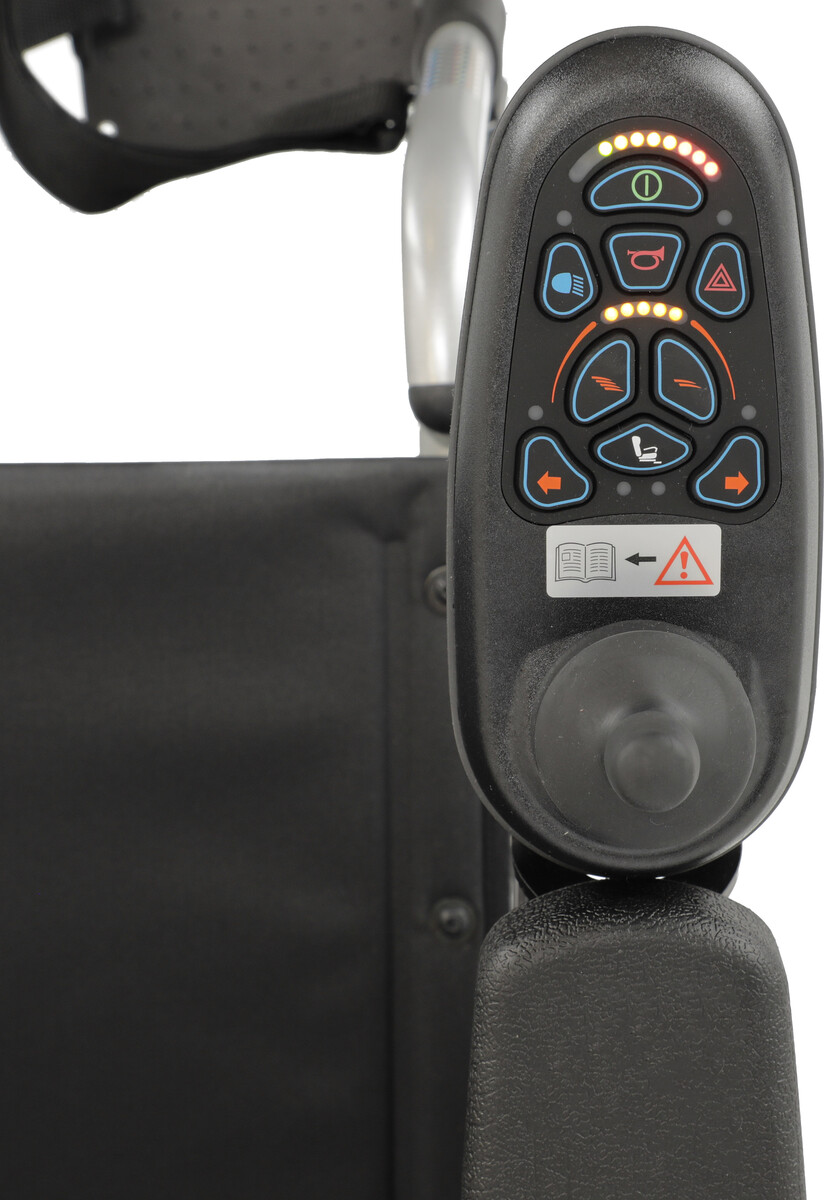 Je snadno ovladatelný a bezpečný během jízdy.Dojezd 30 km. Překonává překážky do výšky 60 mm. Po vyjmutí baterie se dá složit. Šířka sedu je nastavitelná. Vhodný i do interiéru.