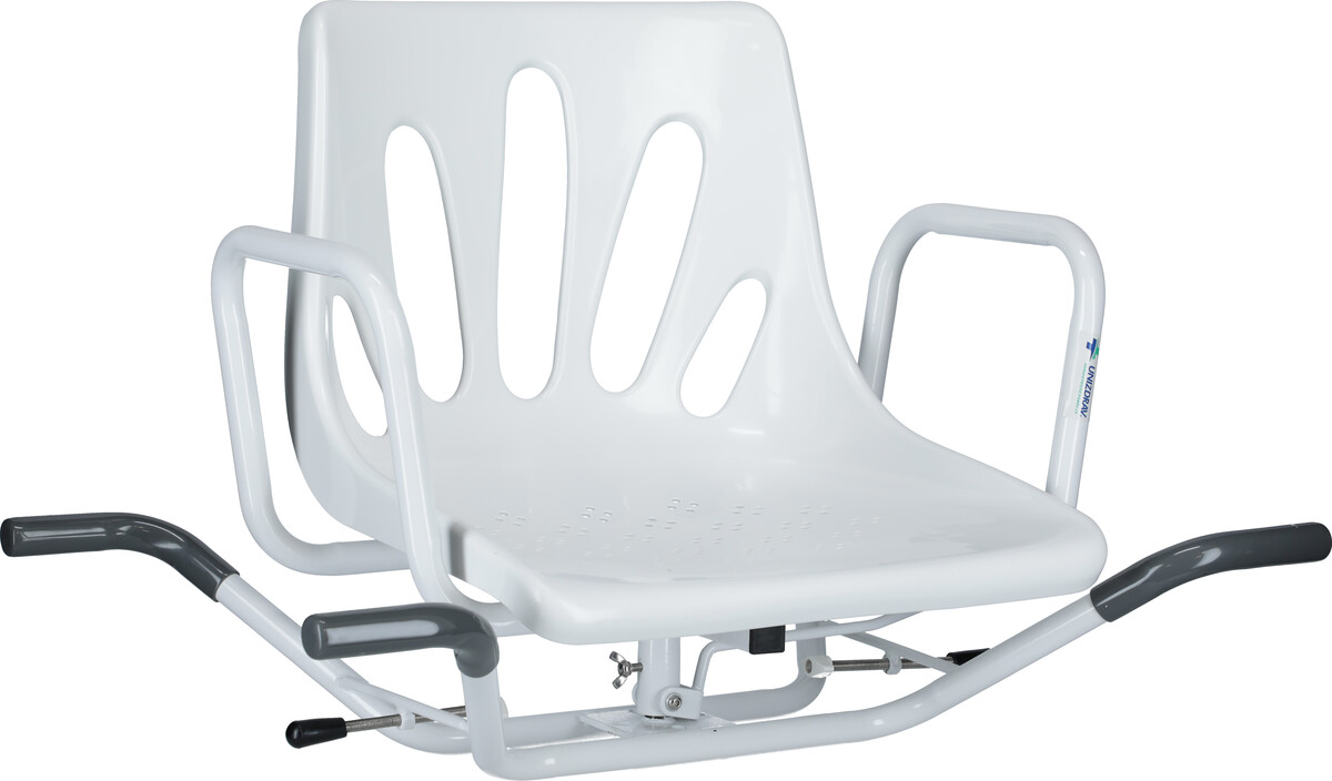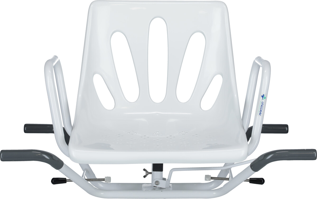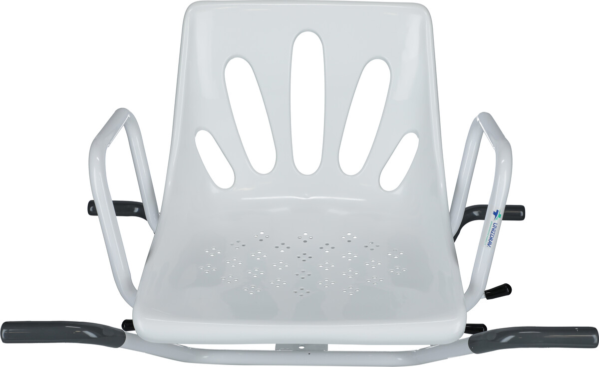 Otočná vanová sedačka zajišťuje bezpečné sprchování ve vaně jednoduchým posazením na sedačku, kterou je možné otáčet kolem její osy o 360˚. Sedačka se zablokuje na místě páčkou. Je otočná ve 4 polohách po 90˚. Konstrukce sedačky je vyrobena z odolných ocelových trubek s práškovou povrchovou úpravou. Plastová sedačka je vyrobena z vysokopevnostního polyetylénu, ve kterém se nacházejí otvory pro odtok vody.