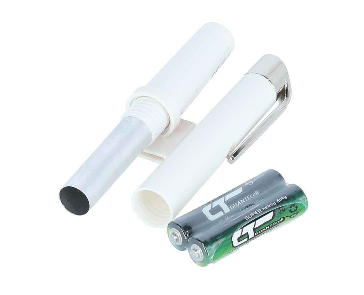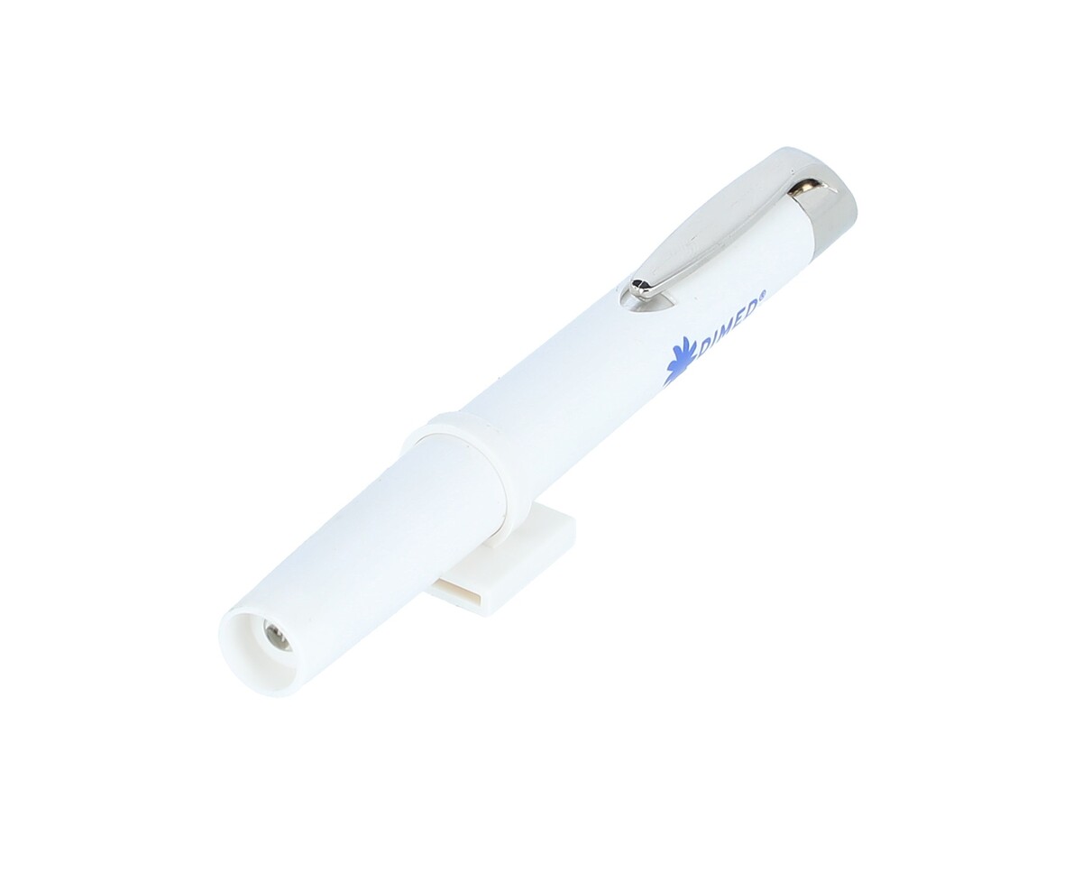 Světelné pero pro lékařské použití slouží na diagnostické testy. Vyšetřují se jim zornice očí, ale také ústná dutina a krk. kovový klip na přichycení na kapsu. Obsahuje plastový držák špičky jazyka pevně spojen s perem potřebný při vyšetření dutiny ústní.