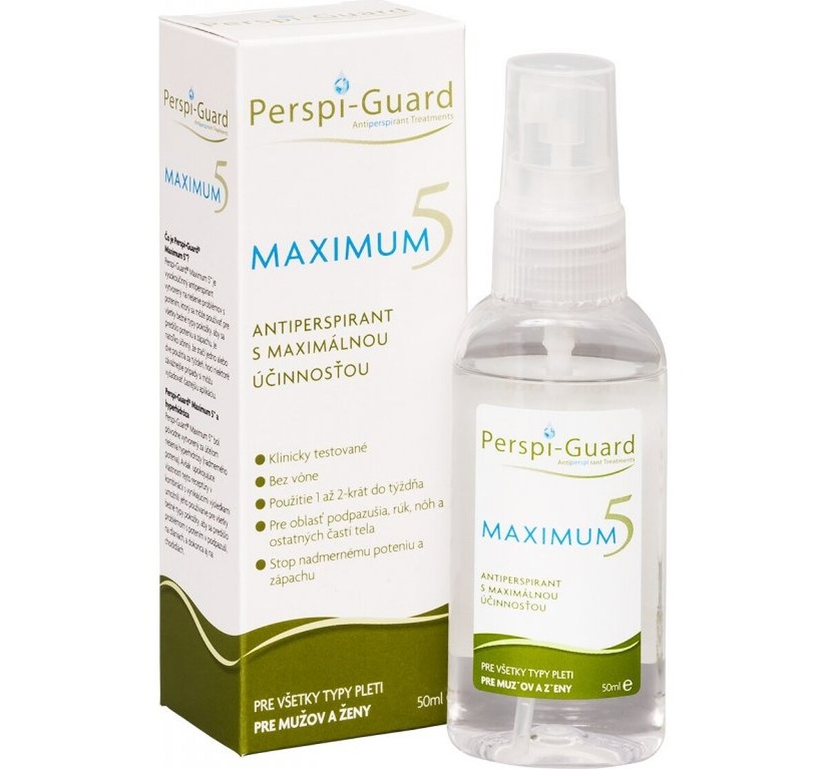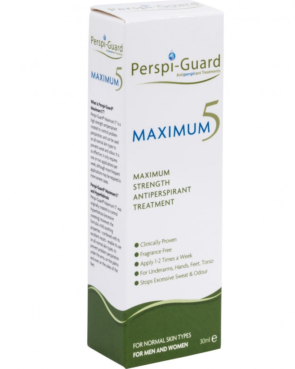 Antiperspirant Perspi-guard Maximum poskytuje až 5-denní kompletní ochranu, která zreguluje produkci potu. Aplikuje se jen jednou nebo dvakrát týdně na většinu problémových míst, jako je podpaží, dlaně, chodidla, třísla nebo hlavu. Je silný a účinný. Díky praktickému rozstřikovači je vhodnou volbou pro celou rodinu, pro ženy i muže.
