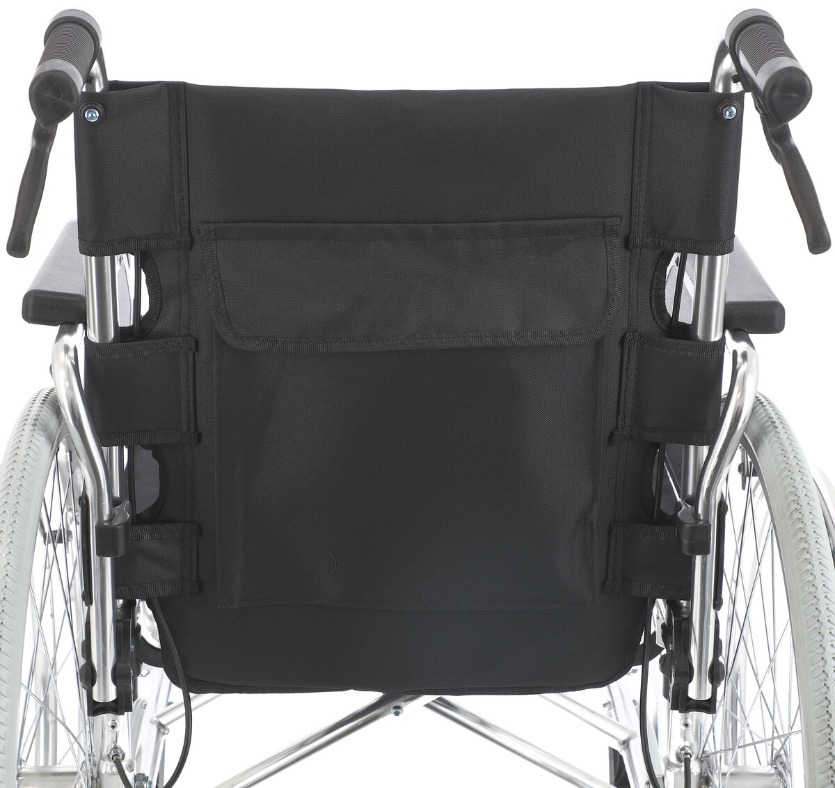 Na vozíku se nacházejí rukojeti s brzdami pro doprovod na zastavení invalidního vozíku. Vozík má i přítlačnou brzdu.