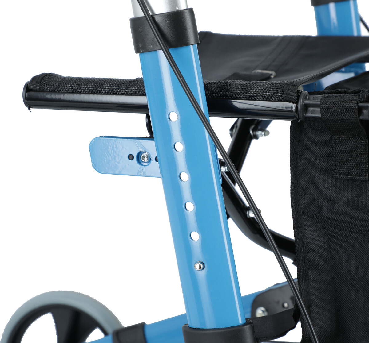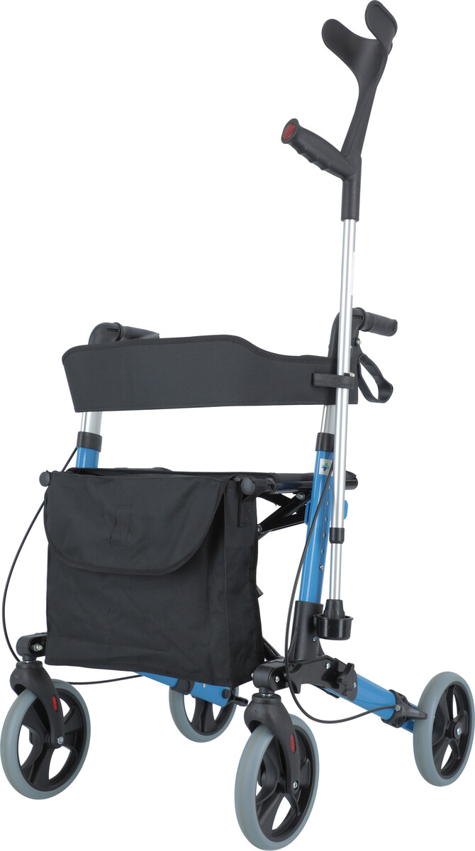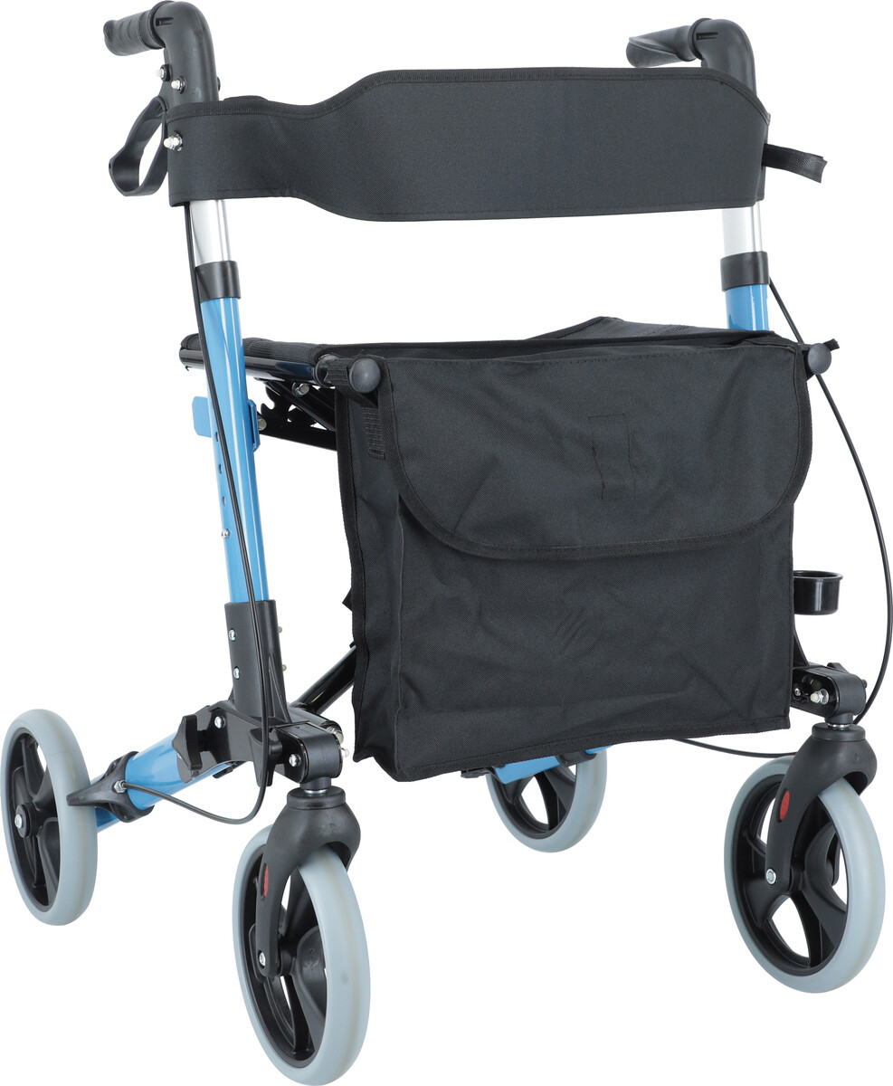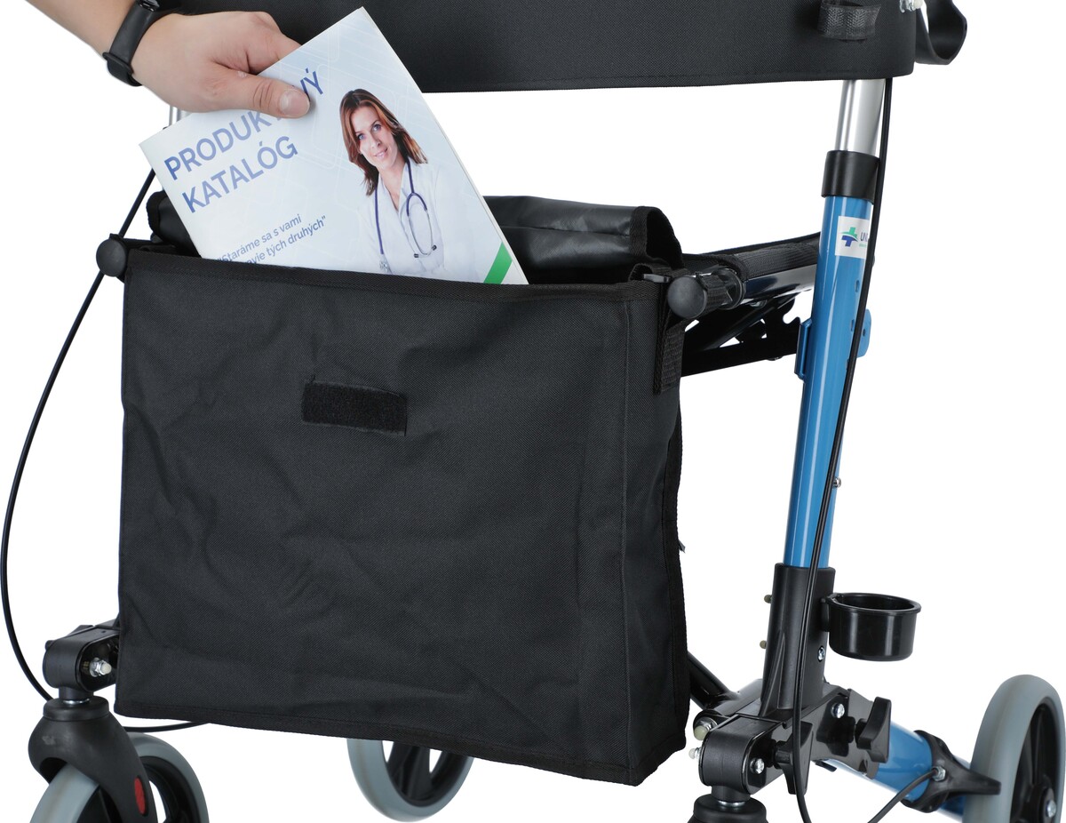 Čtyřkolka je vyrobena z lehkého a odolného ocelového hliníku s práškovým povrchem. Průměr pevných kol je 20 cm. Dodává se s taškou na přenášení osobních předmětů.  Na boční straně má držadlo na hůl nebo berlu.