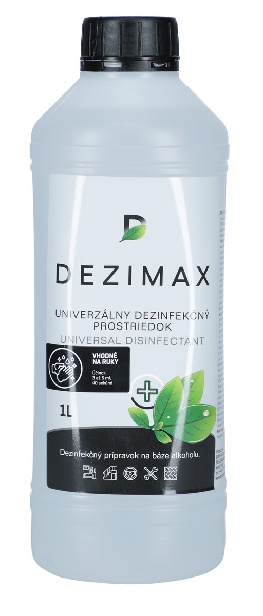 Univerzální dezinfekční přípravek DEZIMAX na bázi alkoholu slouží na efektivní dezinfekci a čištění rukou, předmětů i povrchů. Díky svému složení s etanolem v koncentraci 683,06 g/l zaručuje efektivní ochranu v rámci každodenní prevence vůči kontaminaci bakteriemi a virusi.