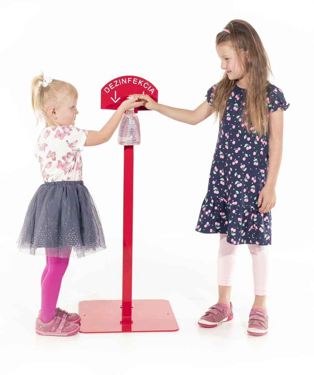 Stojan červený na dezinfekci rukou s dezinfekčním gelem Me Too, 500 ml