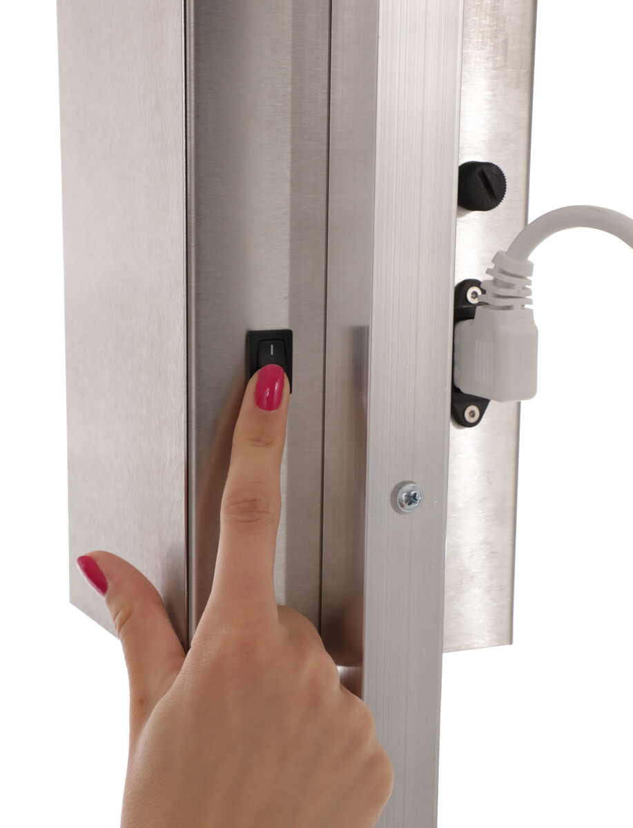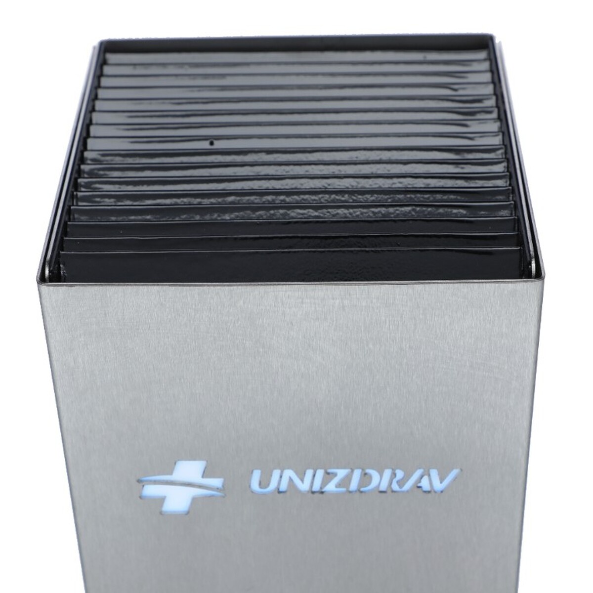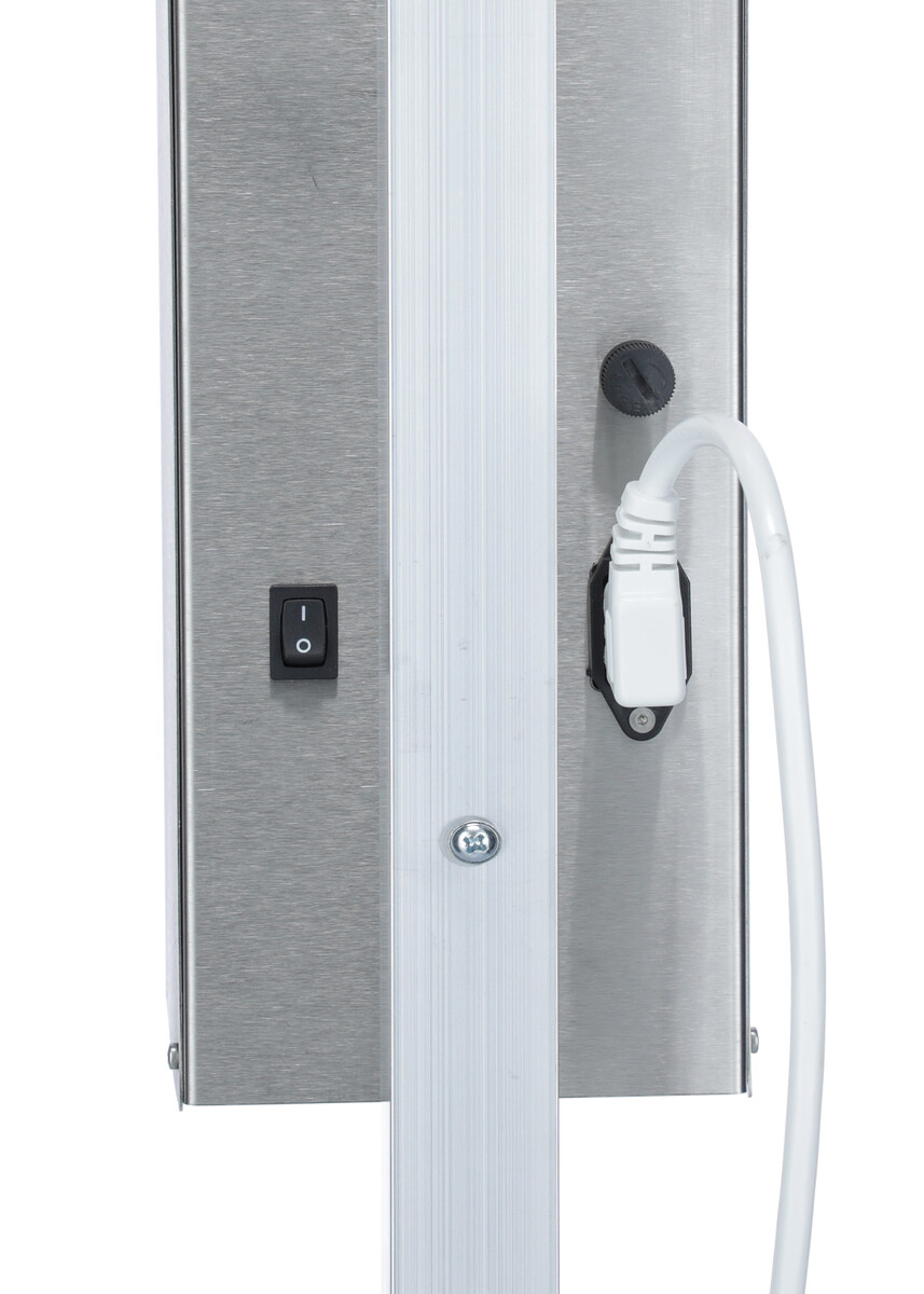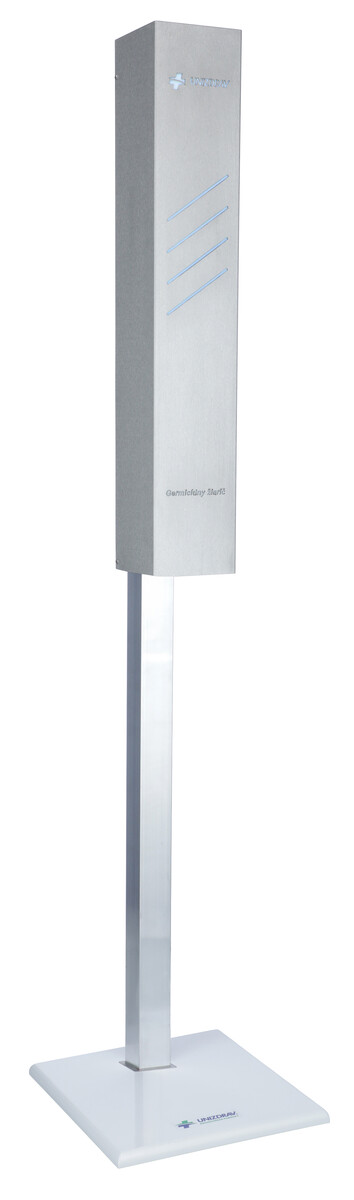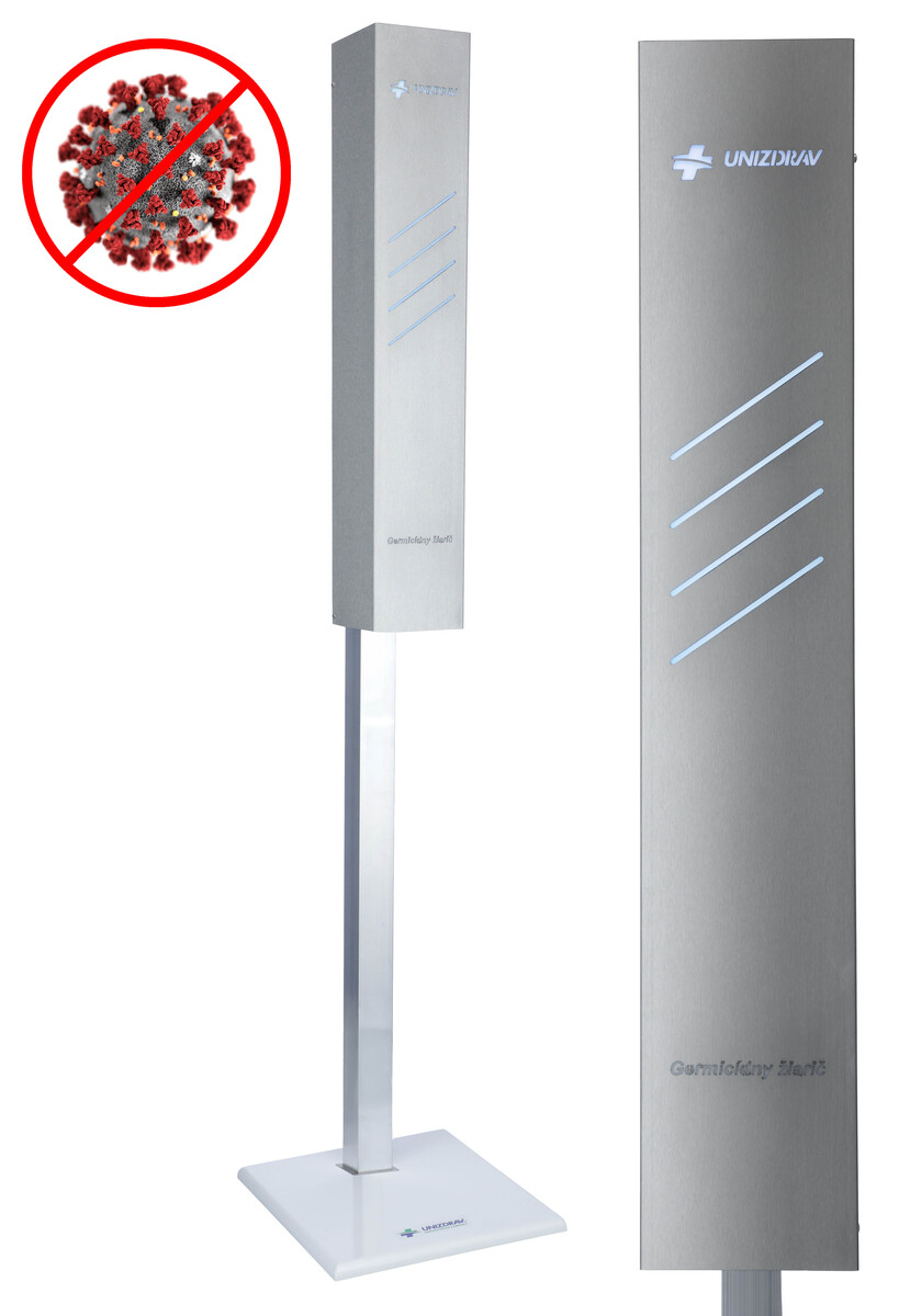 Součástí germicidního zářiče UNIZDRAV je i statický stojan, který je speciálně navržen na stabilní uchycení přístroje. Podstavec stojanu je vyhotoven v rozměru 33 x 33 cm..