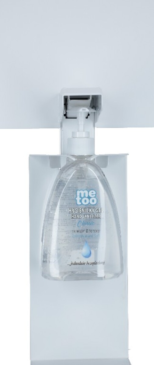 Součástí držáku je dezinfekční gel Me Too, 500 ml.