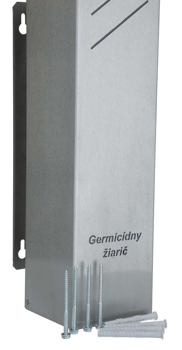 Součástí germicidního zářiče UNIZDRAV je statický nástěnný stojan, kabel, šrouby, hmoždinky a předpřipravené díry pro montáž na stěnu.