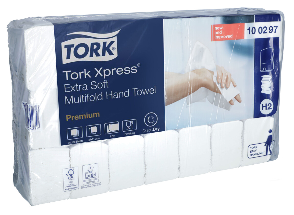 Papírové utěrky na ruce Tork Xpress Multifold Premium poskytnou vašim hostům výjimečné sušení rukou. Utěrky mají velký rozměr, extra jemné provedení a systém QuickDry, který poskytuje vysokou absorpci.