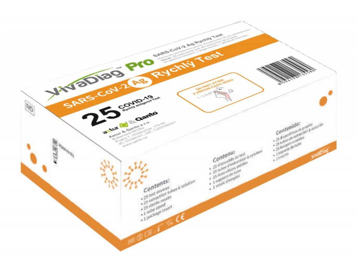 VivaDiag Antigenní certifikovaný samotest – self test ze špičky nosu na COVID-19, 25 ks - EXPIRACE 18.10.2023