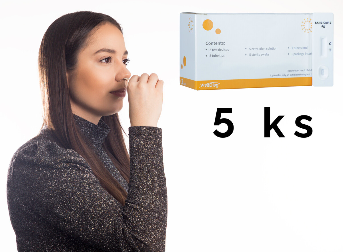 VivaDiag Antigenní certifikovaný výtěrový self test ze špičky nosu i nosohltanu na COVID-19, 5 ks