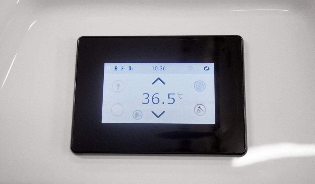 K dispozici je přehledný dotykový LCD panel a zabudovaný Wi-Fi modul, díky kterému lze ovládat všechny funkce vířivky pohodlně i přes mobilní aplikaci.