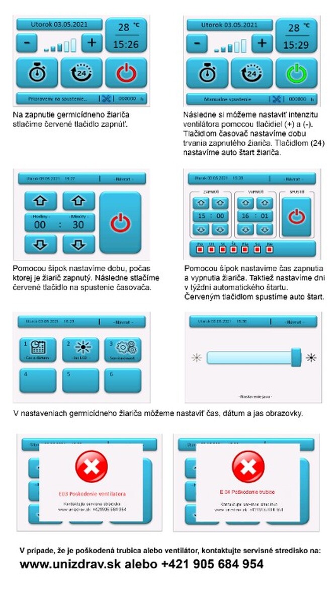 Zářič je navržen na dezinfekci během přítomnosti osob – UVC záření zůstává v obalu samotného zářiče díky optickým clonám s vysokou prodyšností, proto se nedostává mimo a neohrožuje přítomných. Pro dosažení nejlepšího účinku germicidního zářiče nechte přístroj spuštěn nepřetržitě 24 hodin 7 dní v týdnu.