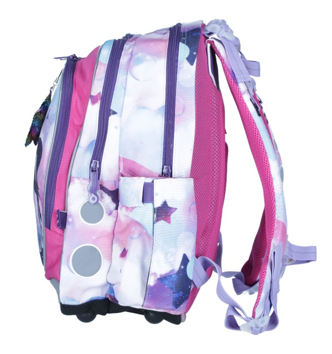 Školní batoh ENDY s motivem jednorožce je díky svým kompaktním rozměrům a nízké hmotnosti ideální pro malé školačky na prvním stupni základních škol. Pestrý design doplněný o třpytivý přívěsek ve tvaru hvězdičky jistě potěší nejednu slečnou a váhá necelý 1 kilogram zase každého rodiče.