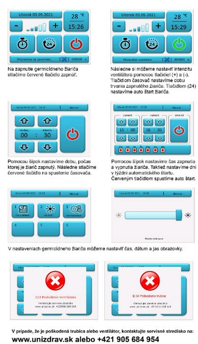 Germicidní zářič UNIZDRAV s displejem uzavřený nástěnný – bílé provedení