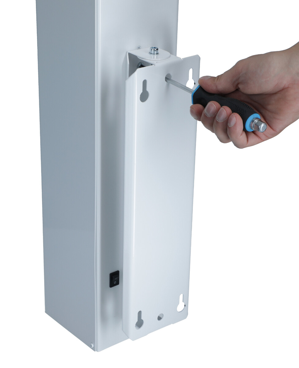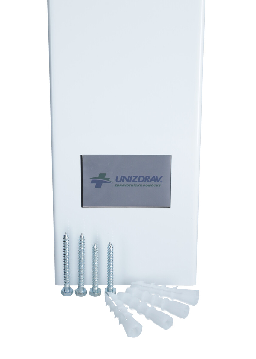 Součástí germicidního zářiče UNIZDRAV je statický nástěnný stojan, kabel, šrouby, hmoždinky a předpřipravené díry pro montáž na stěnu.