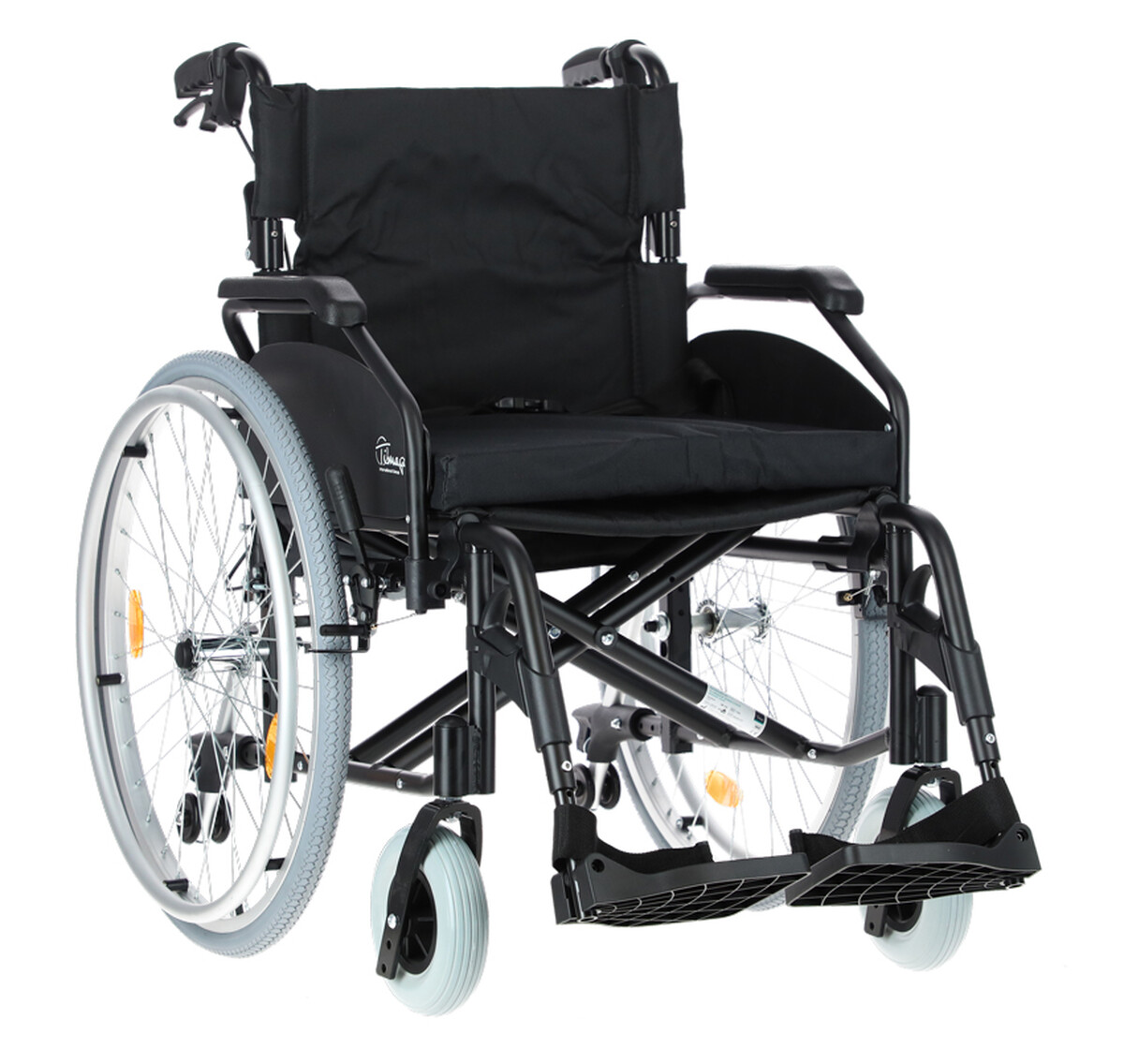 Odlehčený mechanický invalidní vozík je vyroben z kvalitní a pevné hliníkové konstrukce s nastavitelným těžištěm. Zadní kola jsou nafukovací nebo pevné a přední kola jsou bezdušová. Zádová opěrka a sedátko jsou vyrobeny z nylonu. V zadní části vozíku se nacházejí bezpečnostní kolečka proti překlopení.