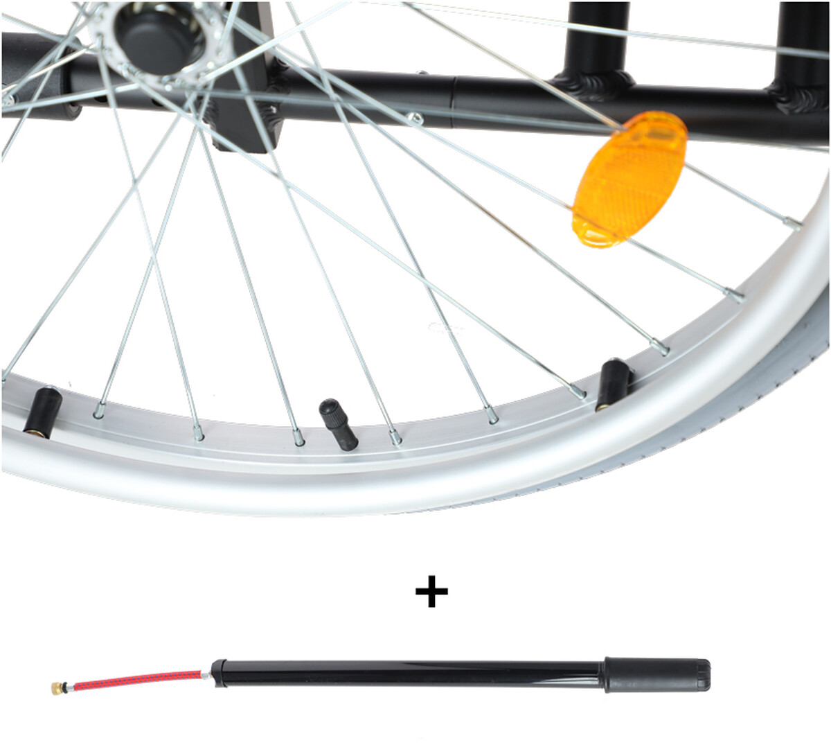 Invalidní vozík je možné lehce a jednoduše složit, čímž zabere jen málo místa, snadno se převeze autem. Součástí balení je i praktická pumpa, která slouží k rychlému dofoukání zadních kol.