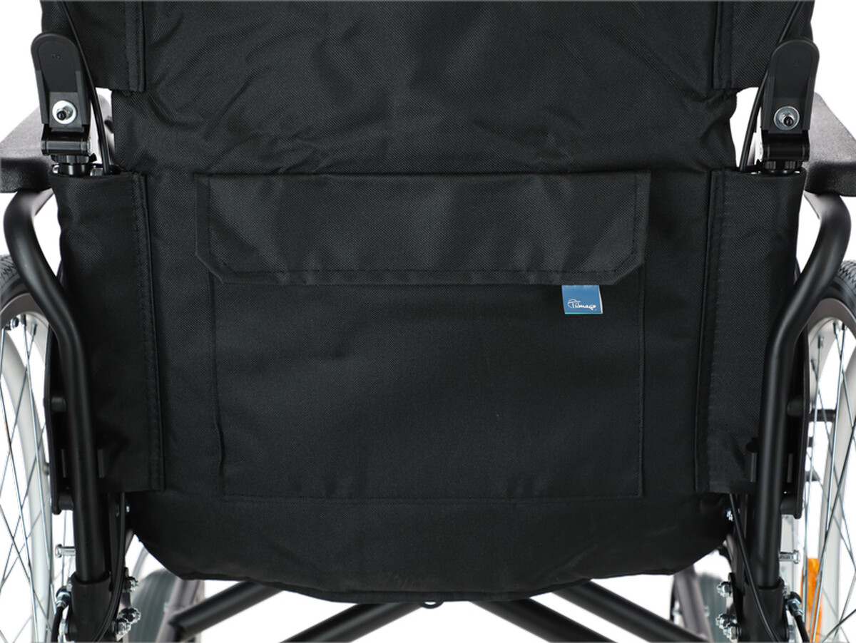 Vozík má ve výbavě kromě základního sedadla i pěnový podsedák, ktoeý má výšku 5 cm a popruh pro upevnění pacienta. Zádovou opěrku je možné sklopit pomocí příslušných páček. To pomáhá při skladnosti vozíku, například při převozu v autě.
