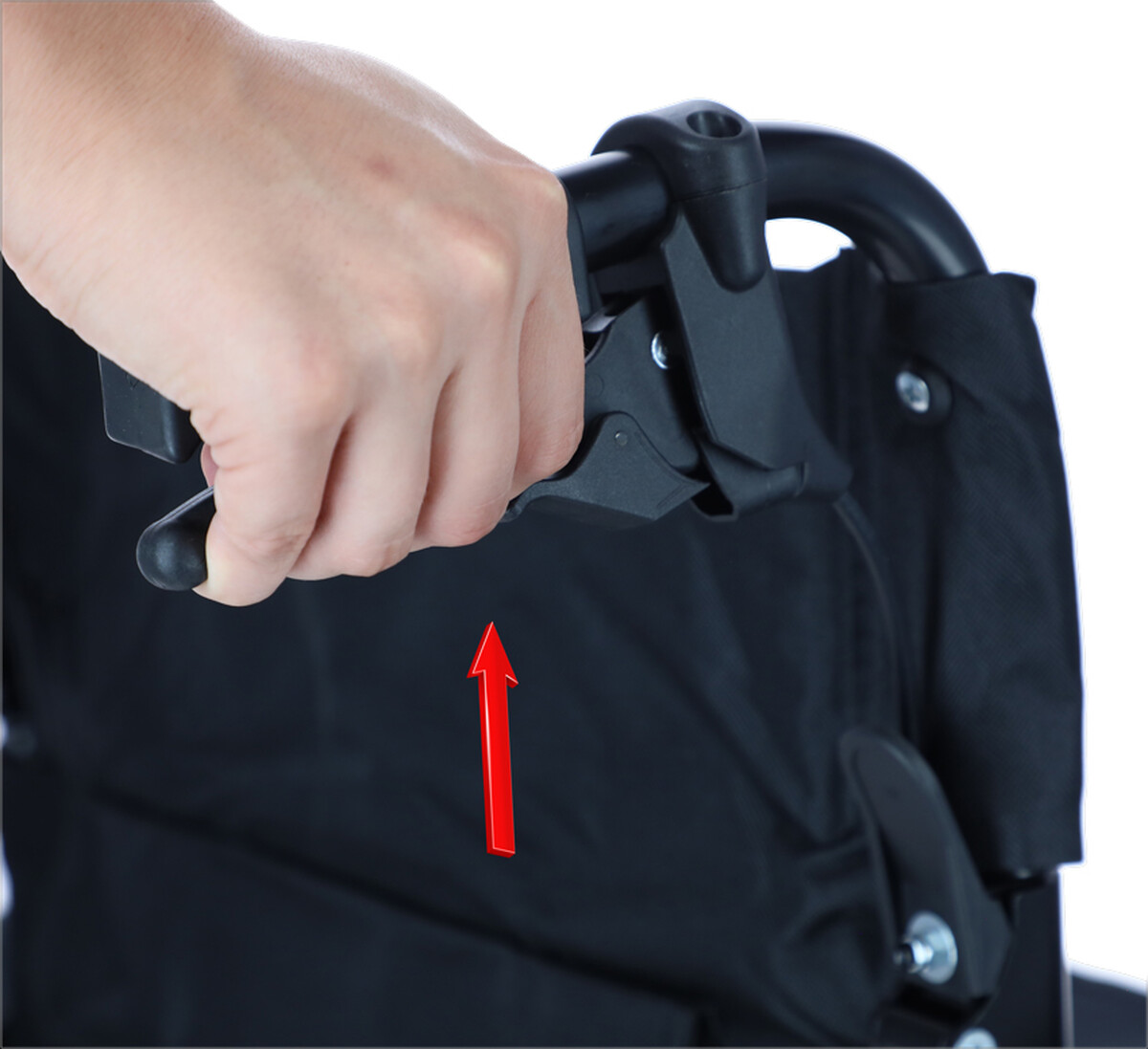 Vozík je možné zabrzdit pomocí přítlačné bzdy, která se nachází při zadním kole.