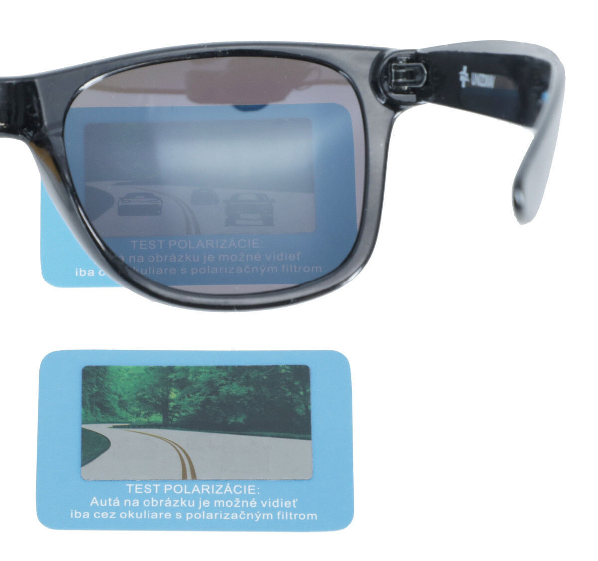 • testovací štítek na ověření polarizační funkce brýlí