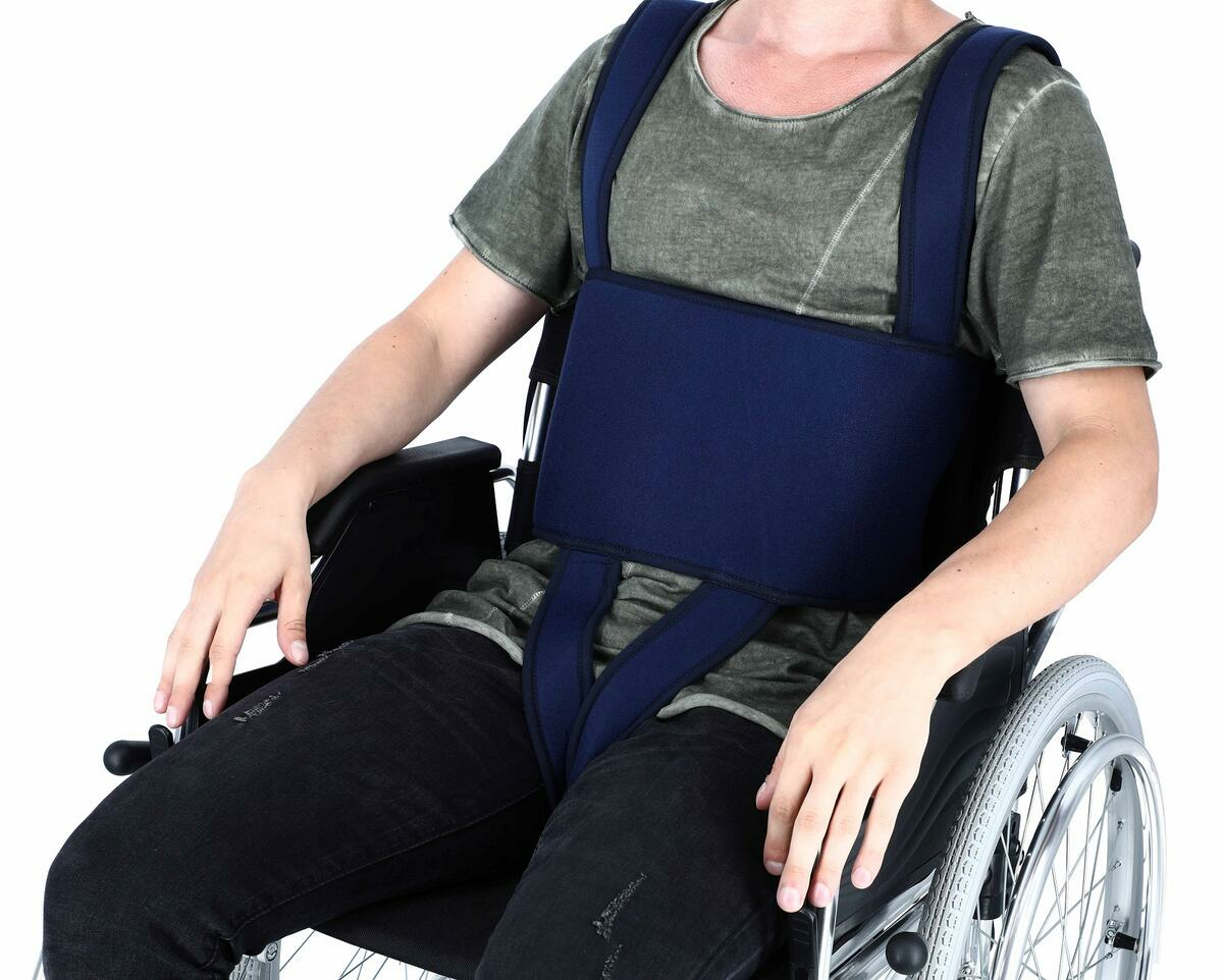 Široké stabilizující popruhy, které se upevňují vzadu pomocí suchého zipu, nabízejí jednoduché a efektivní upevnění pacienta v invalidním vozíku. Pomáhají udržovat správné držení těla během sezení a brání sklouznutí z vozíku. Popruhy jsou široké 21 cm. Délka popruhů je nastavitelná od 130 - 150 cm.
