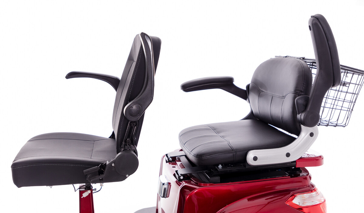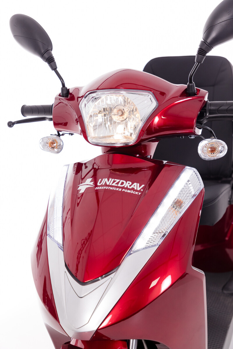 Luxusní skútr nejvyšší třídy určený pro seniory, imobilní pacienty či osoby se sníženou pohybovou schopností. Vhodný pro seniorské páry, delší trasy a různé terény, poskytuje maximální komfort a bezpečnost během jízdy.