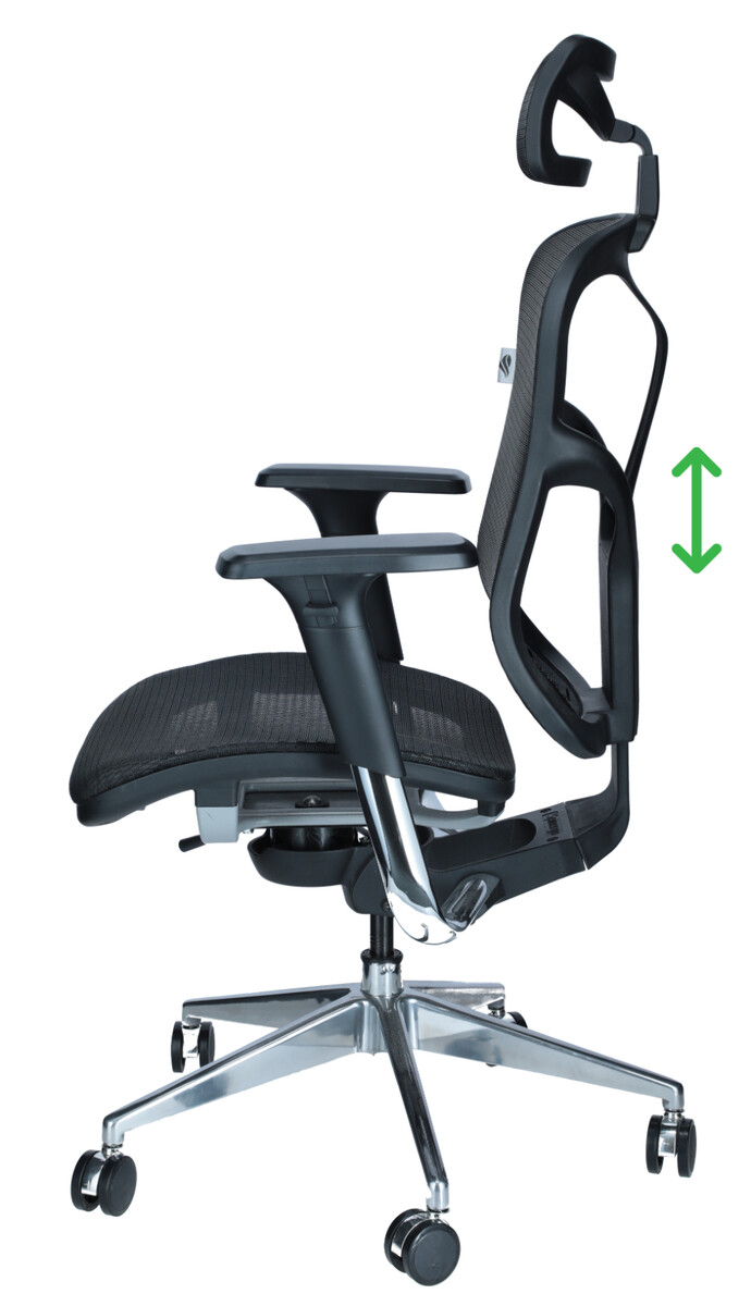 Područky mohou být upraveny jak na výšku, tak na šířku. Individuálně nastavitelné opěradlo odlehčuje a podporuje meziobratlové ploténky a obratle.