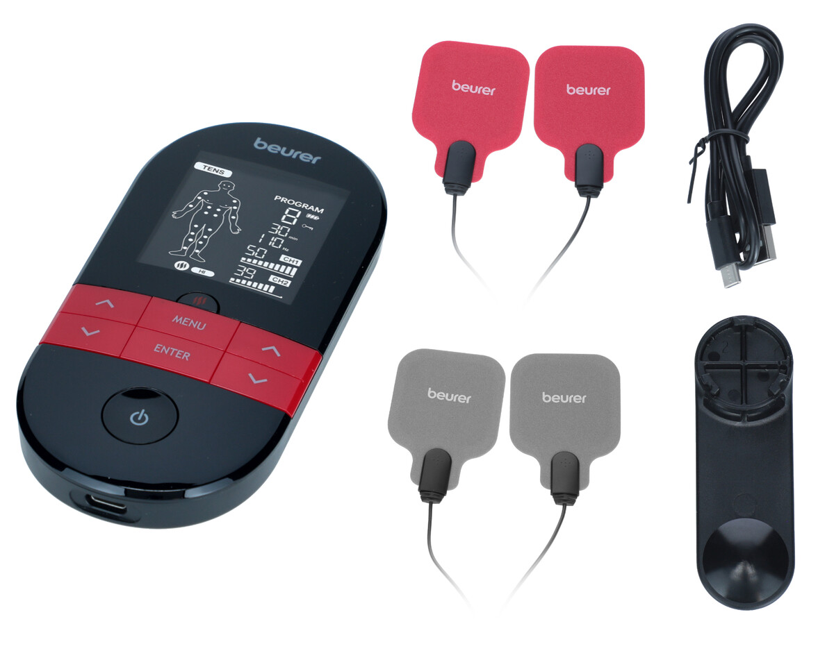 Elektrostimulátor BEURER EM 59 TENS/EMS/Heat – s vyhřívací funkcí nabízí v jednom přístroji hned 3 typy ošetření, které se postarají o ulevení od bolesti různého charakteru a příjemnou relaxaci.