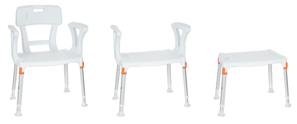 Je možné sestavit ji ve třech různých provedeních, můžete ji využít ve sprše, ve vaně a jiných koupelnových zařízeních. Židle je vybavená výškově nastaviteľnými nožičkami s protiskluzovými nástavci. Díky nízké hmotnosti se židle dá jednoduše přemísťovat