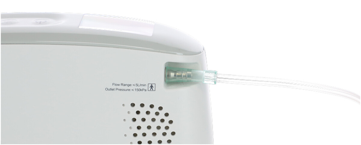 Lehký přenosný kyslíkový koncentrátor s vysokým výkonem a koncentrací kyslíku do 96 % vhodný k domácímu a rekreačnímu použití.