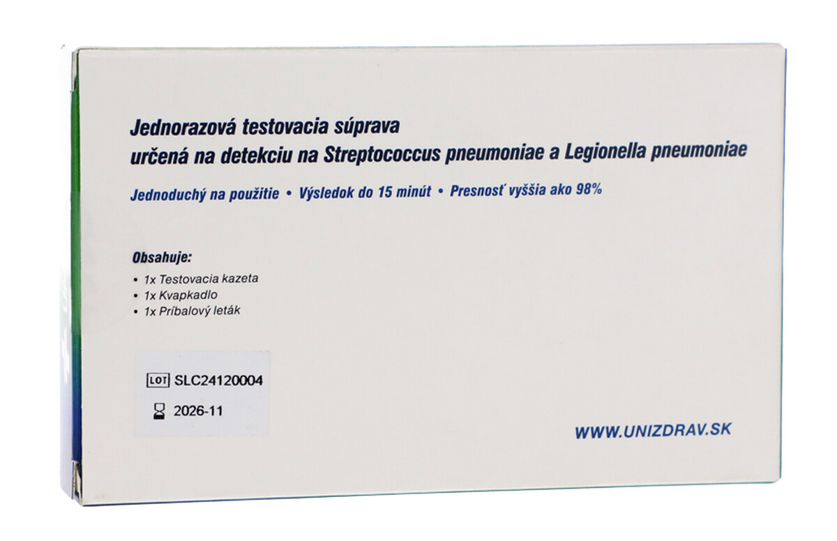 Rychlý test ke kvalitativnímu zjištění antigenu Streptococcus pneumoniae a Legionella pneumophila v lidské moči.