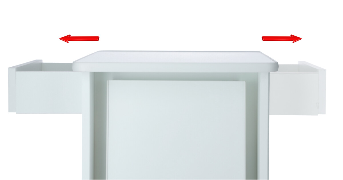 Tento stolek má velmi praktické využití, protože jeho úložný prostor sestává ze šuplíku a skříňky. Navíc stolek obsahuje jídelní desku, která se dá pomocí příslušné pojistky jednoduše vyklopit a sklopit. Stolek je použitelný z pravé i levé strany postele.