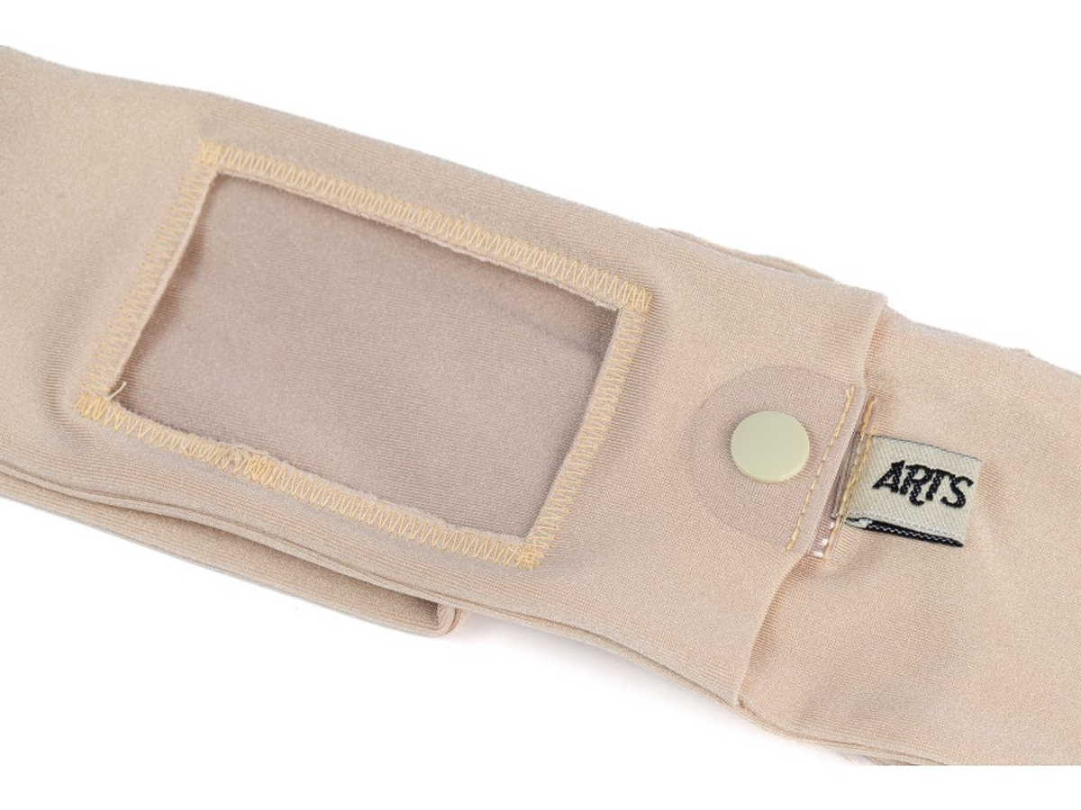 Pohodlný elastický diabetický pás s průhledným pouzdrem na inzulínovou pumpu.