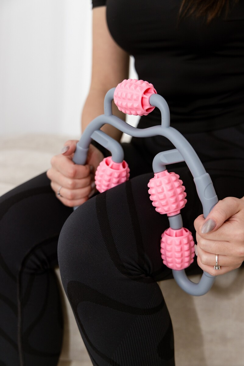 Masážní pomůcka díky otáčivým válečkům umožňuje masáž různých částí těla jako jsou krk, ramena, lýtka, stehna nebo boky. Ergonomicky tvarovaný roller je ohebný a proto je možné jeho šířku přizpůsobit šířce masírované části těla.