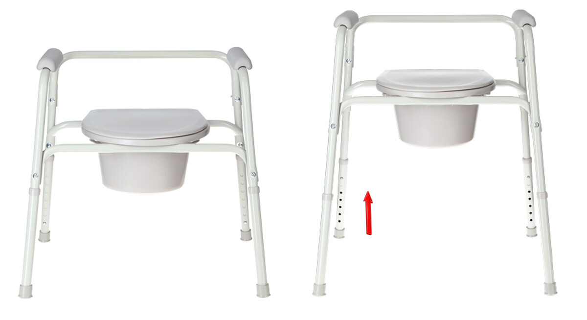 Výškově nastavitelná toaletní židle slouži jako náhrada WC pro pacienty se sníženou pohyblivostí.