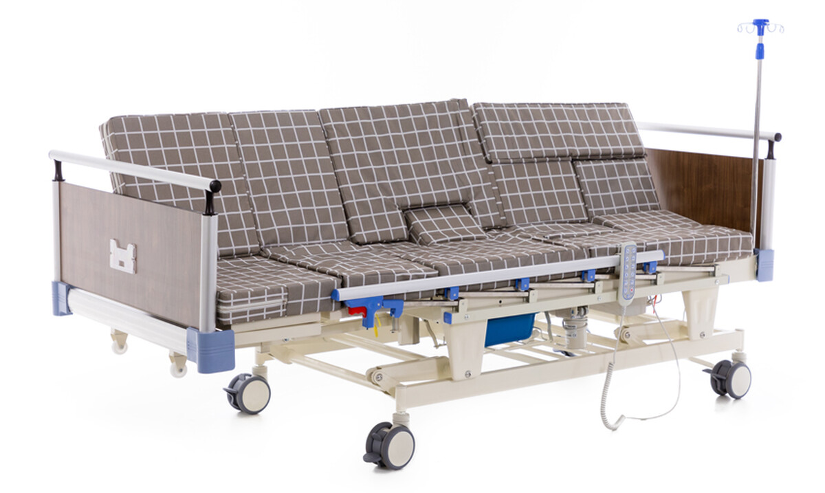 Elektrické ovládání se šesti funkcemi k nastavení: výšky lůžka, časovače polohování, zádové opěrky, opěrky nohou, funkce celkového otáčení těla do levé a pravé strany a funkce vysunutí toaletního kbelíku.