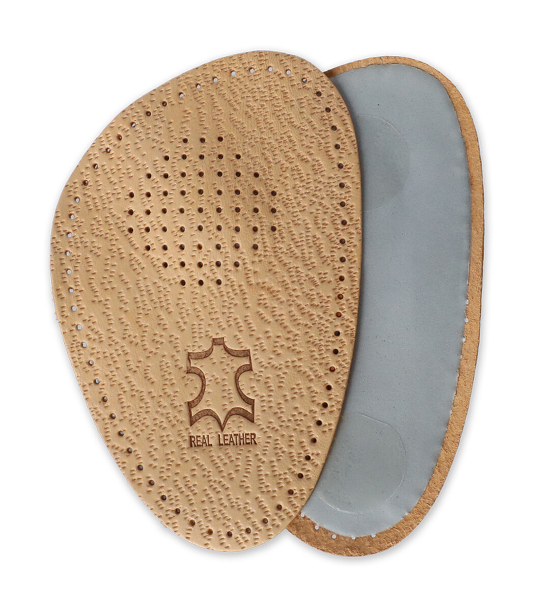 Kožené ortopedické vložky do přední části obuvi s metatarzálním zvýšením a podporou příčné klenby.