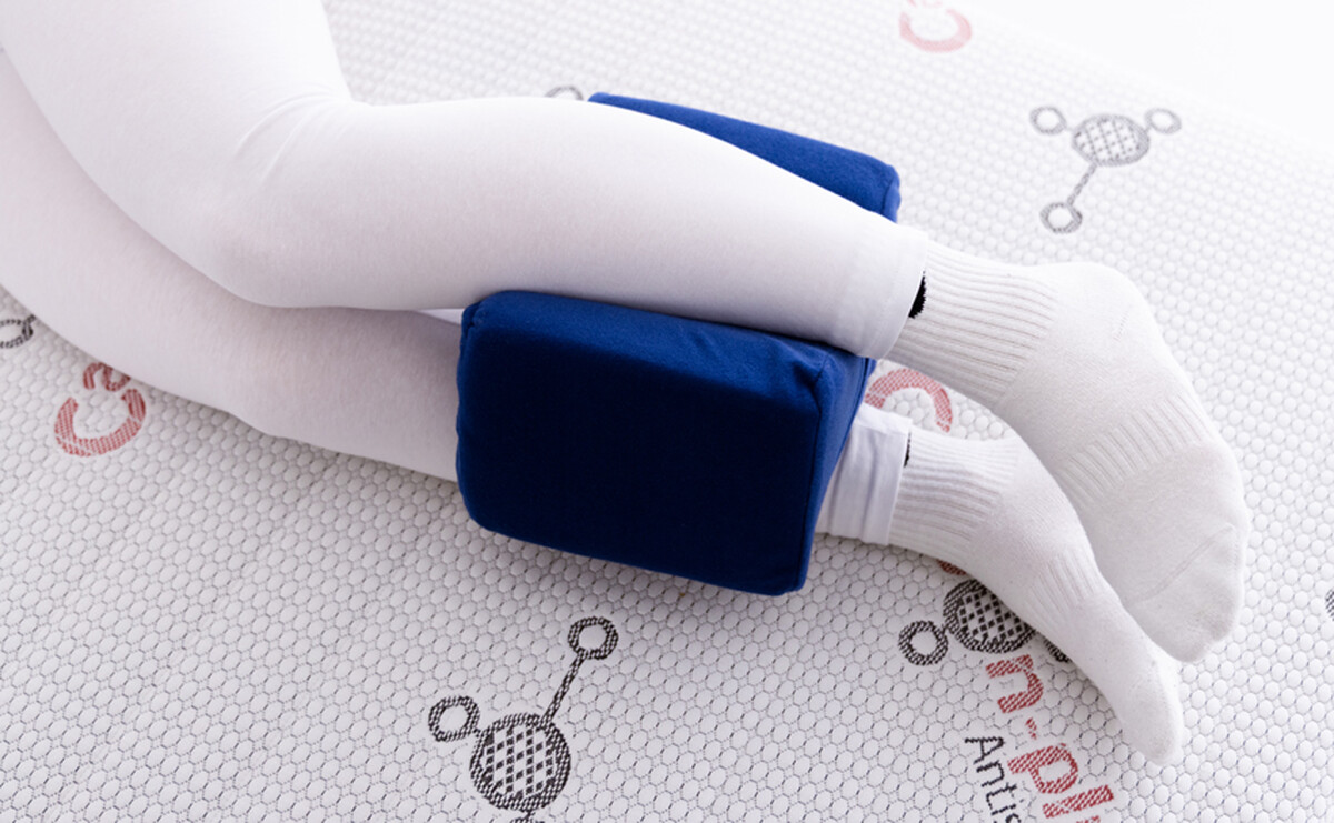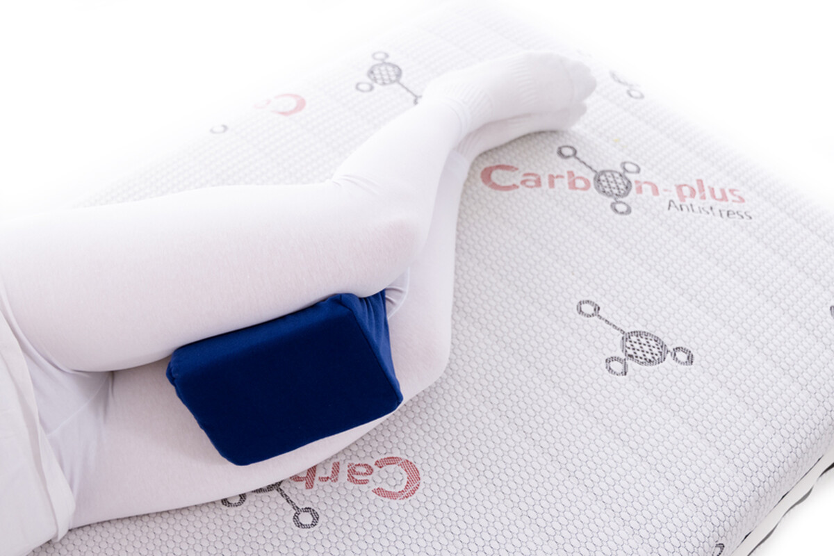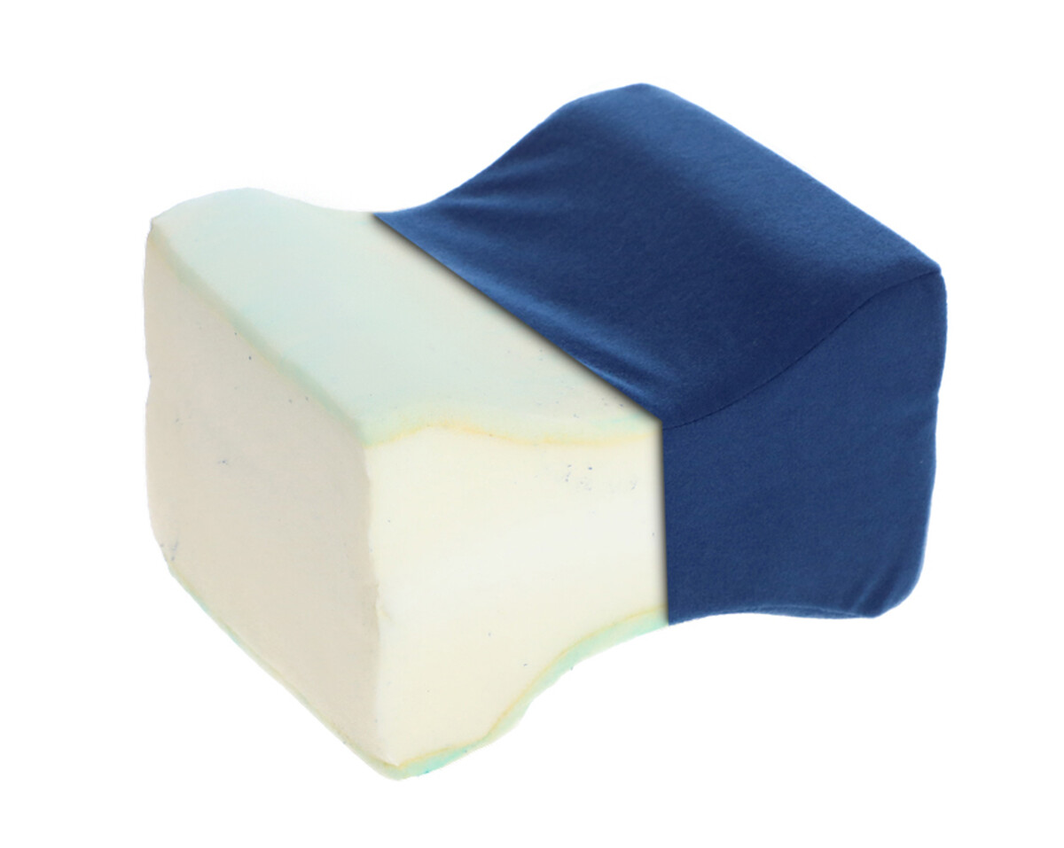 Podpůrný rehabilitační polštář mezi nohy zajišťuje správnou polohu kolen během odpočinku, zmírňuje tlak a ulevuje od bolesti.