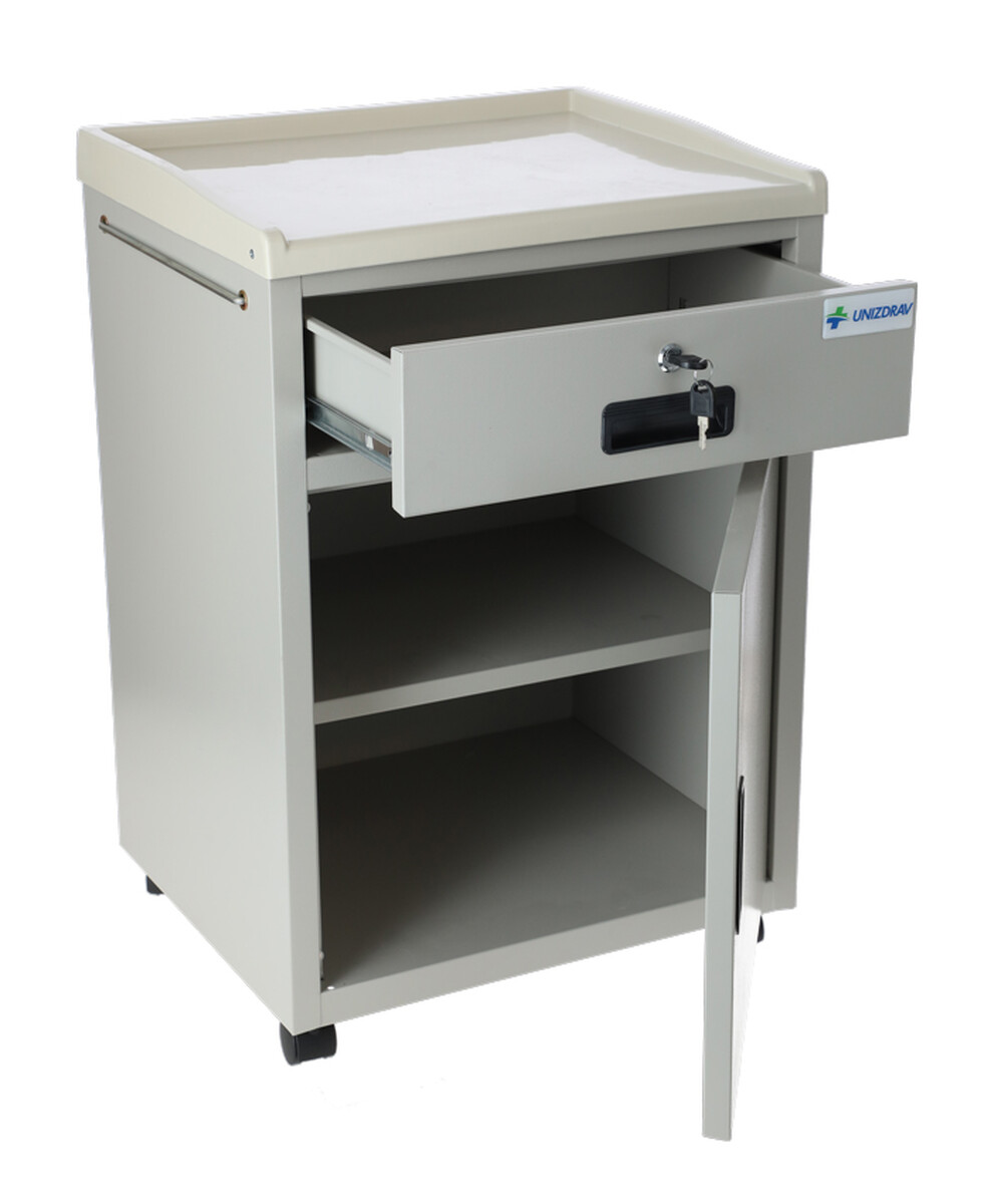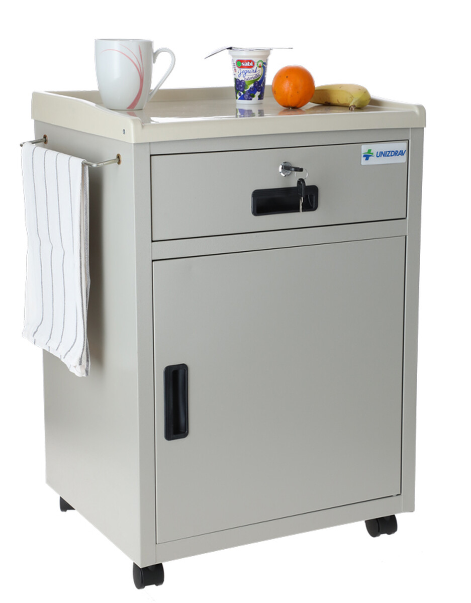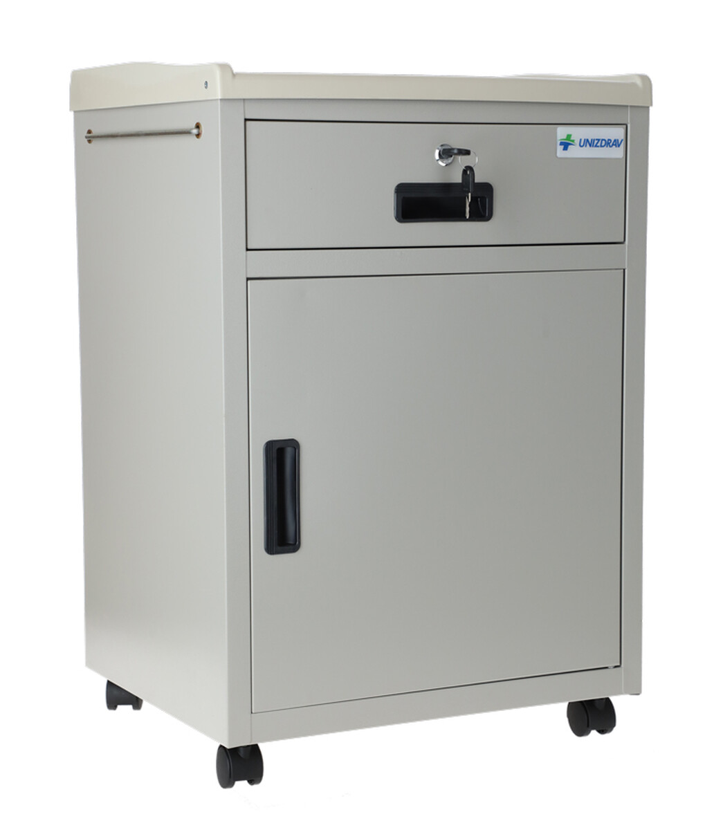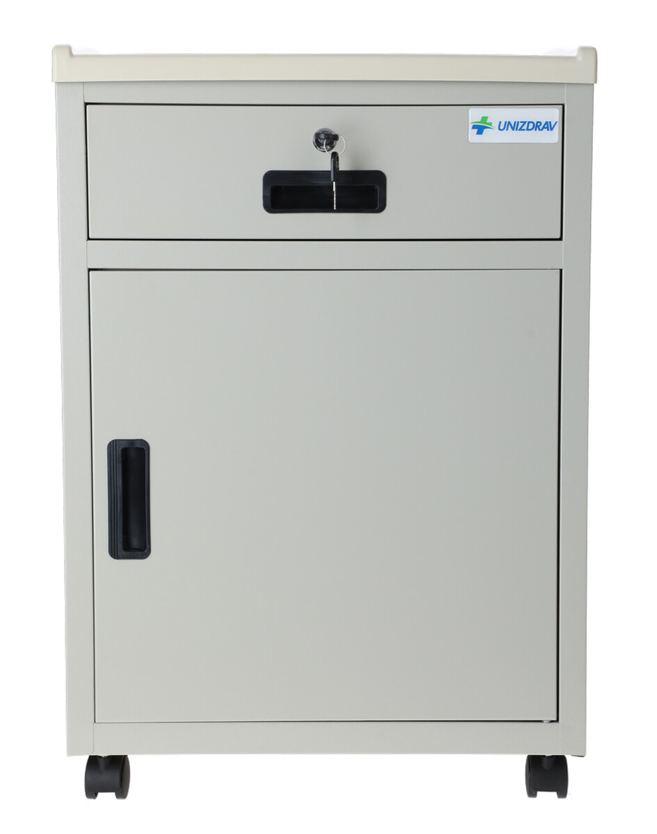 Příruční noční stolek s dostatkem úložného prostoru je praktickým funkčním doplňkem do zdravotnického i domácího prostředí.