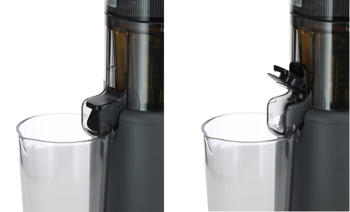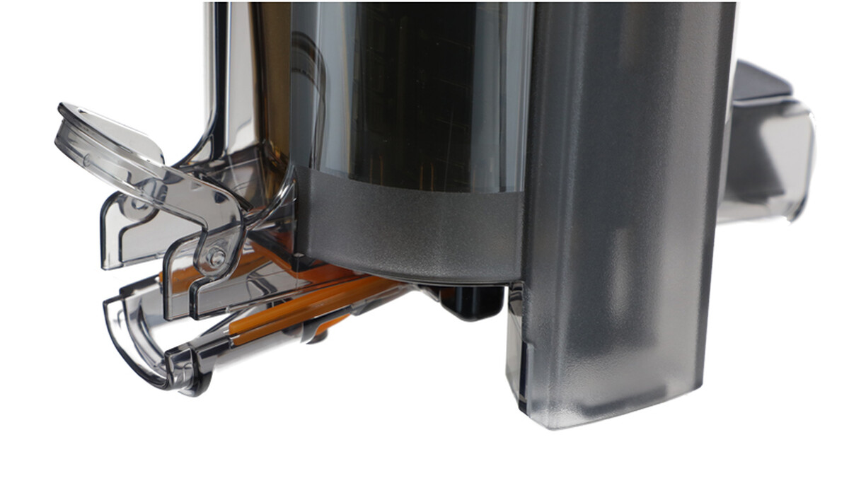 Přístroj se montuje a demontuje jednoduchým intuitivním způsobem. Kryt zásobníku je možné bezpečně otevřít a zavřít kdykoli během používání – po jeho otevření se provoz odšťavňovače automaticky zastaví a po zavření se proces odšťavňování opět obnoví.