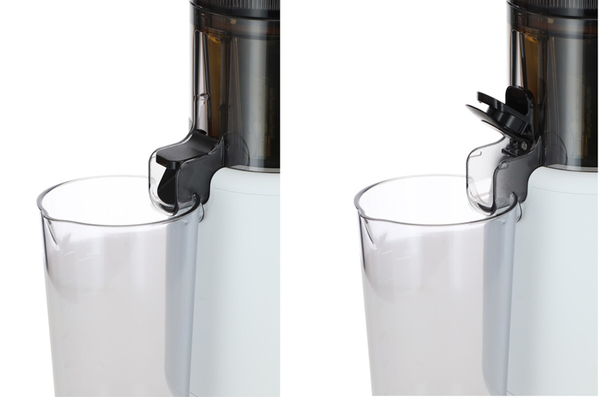 Přístroj se montuje a demontuje jednoduchým intuitivním způsobem. Kryt zásobníku je možné bezpečně otevřít a zavřít kdykoli během používání – po jeho otevření se rovoz odšťavňovače automaticky zastaví a po zavření se proces odšťavňování opět obnoví.
